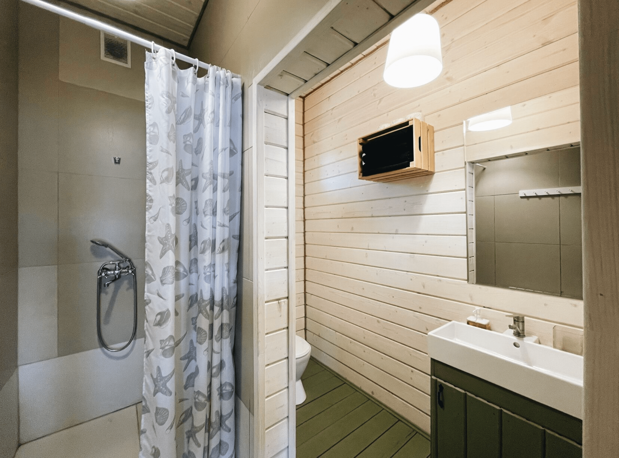 - Туалет и душевая кабина в домике. Горячая вода есть.