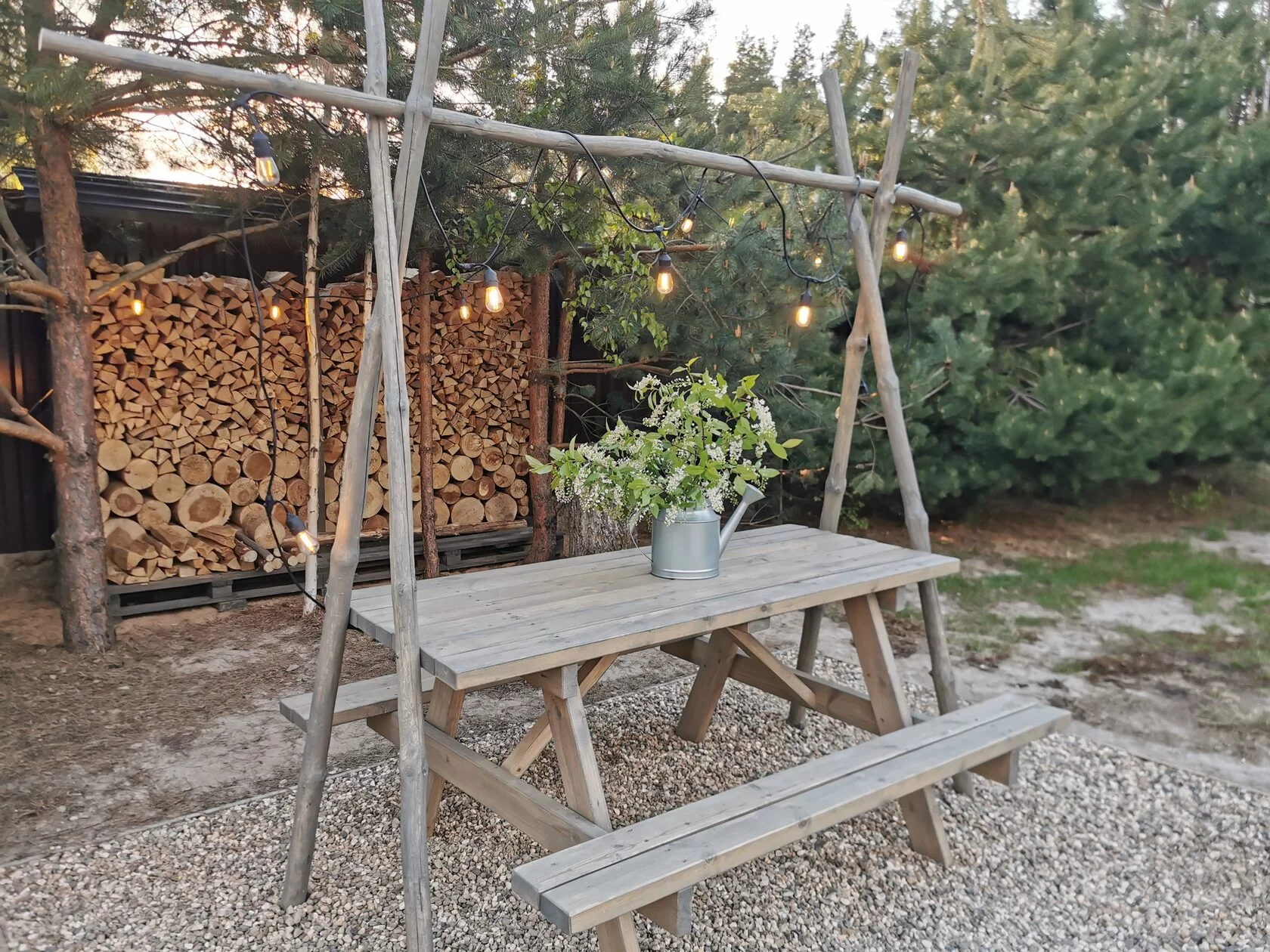 На веранде можно расслабиться на овчинках в креслах Jysk с чашечкой ароматного травяного чая. Рядом с домом расположена зона барбекю с мангалом и костровищем. Для вашего удобства предоставляются шампура, решетка и охапка дров для костра.