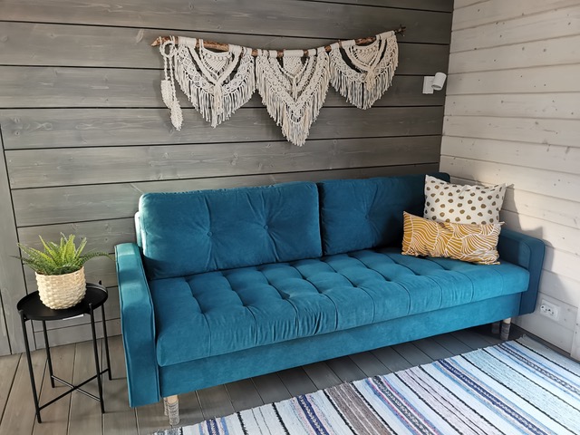 В доме есть уютная спальня, кухня-гостиная, санузел, веранда и терраса. В гостиной установлен раскладной диван, телевизор с эфирным телевидением, Smart-TV и подпиской Ökko. Также в вашем распоряжении виниловый проигрыватель с коллекцией пластинок, небольшая библиотека и настольные игры.