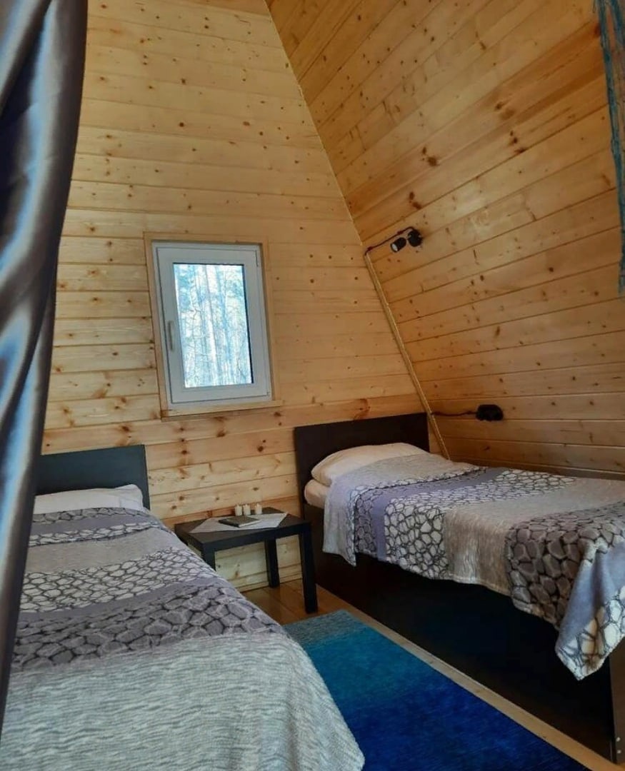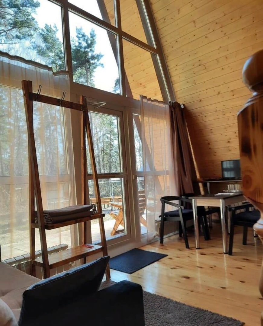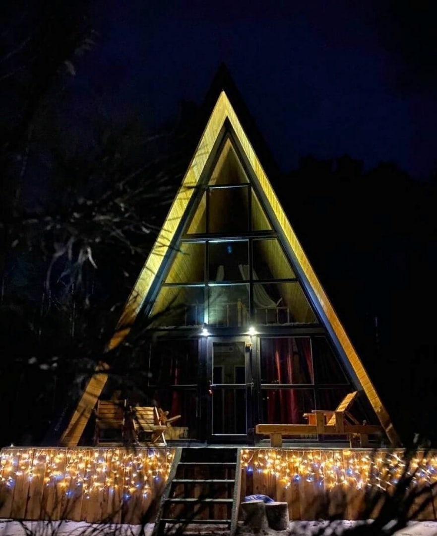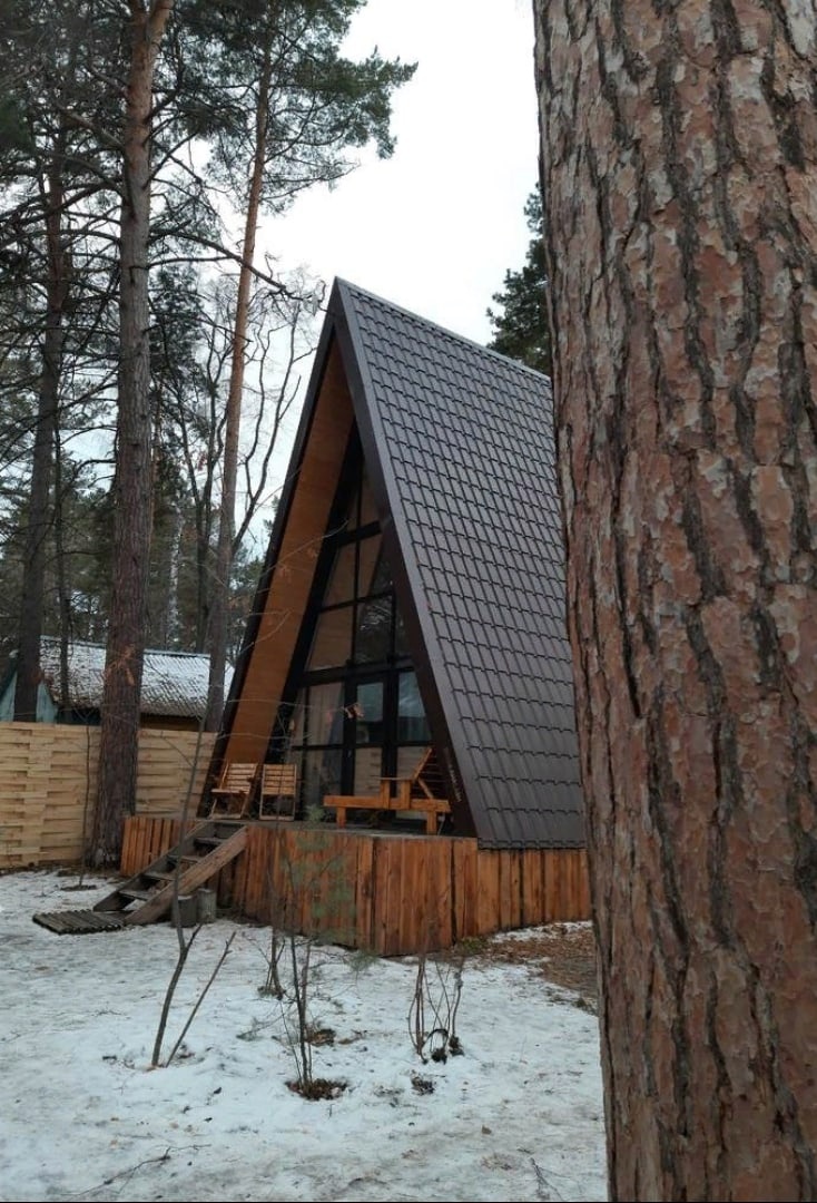 Комфортное размещение со всеми удобствами в домике треугольной формы с панорамными окнами "до неба".