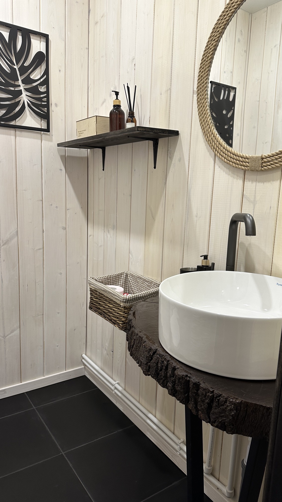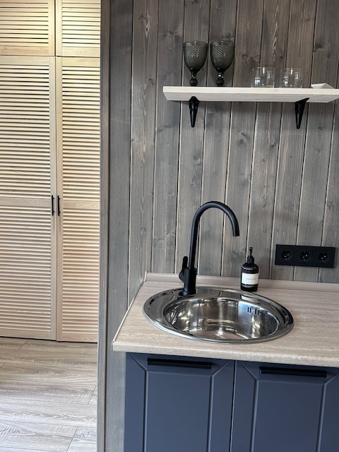 — в нашем доме почти всю мебель мы делали своими руками (столешницы в гостиной и санузле из натурального дуба);