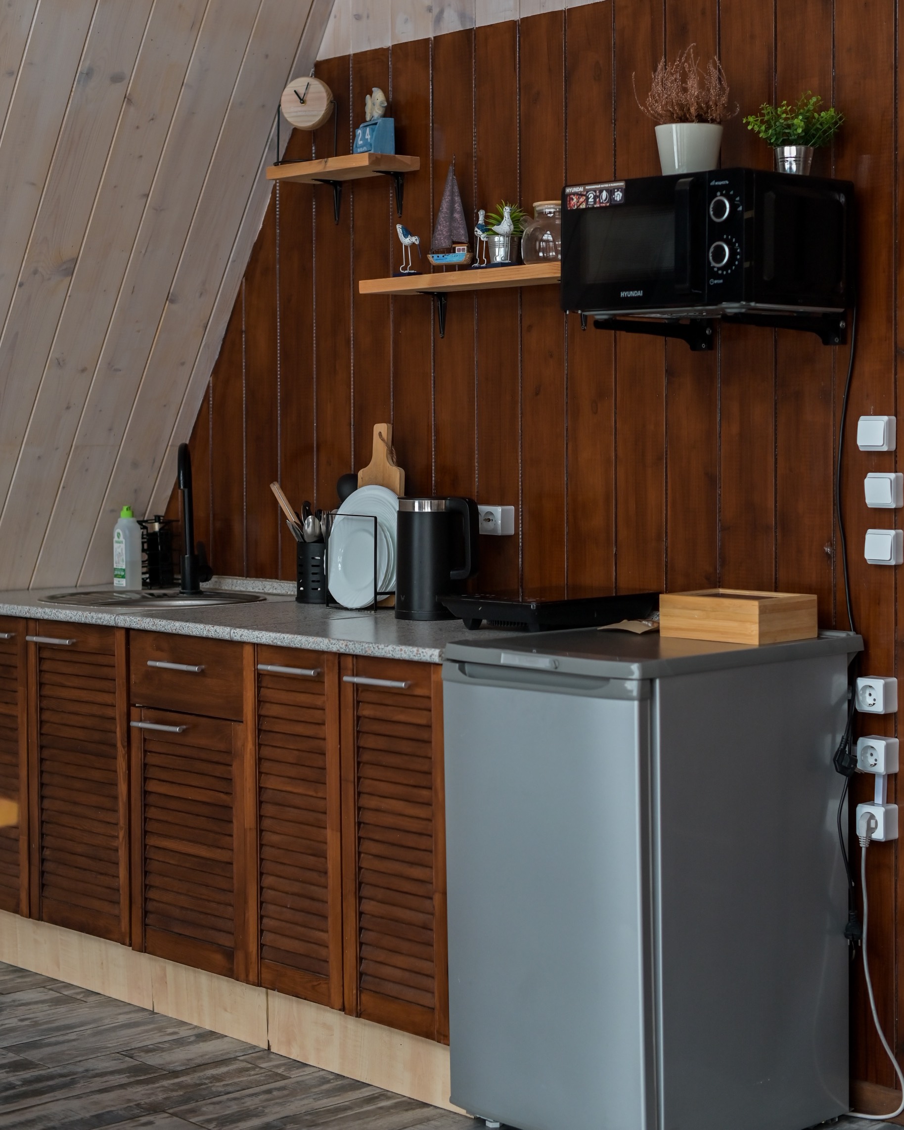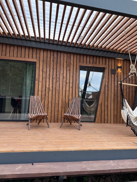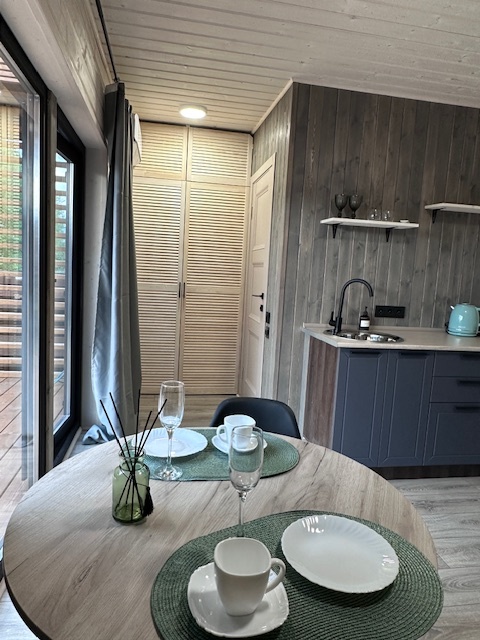 Дома отгорожены друг от друга, имеют свою приватную территорию и мангальную зону. Тут можно провести тихие выходные вдвоём или компанией до 6 человек.