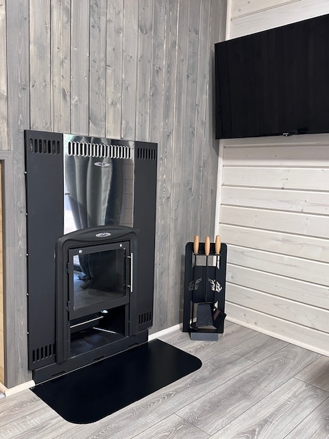 В доме прекрасная дровяная баня с панорамным окном с видом на лес.