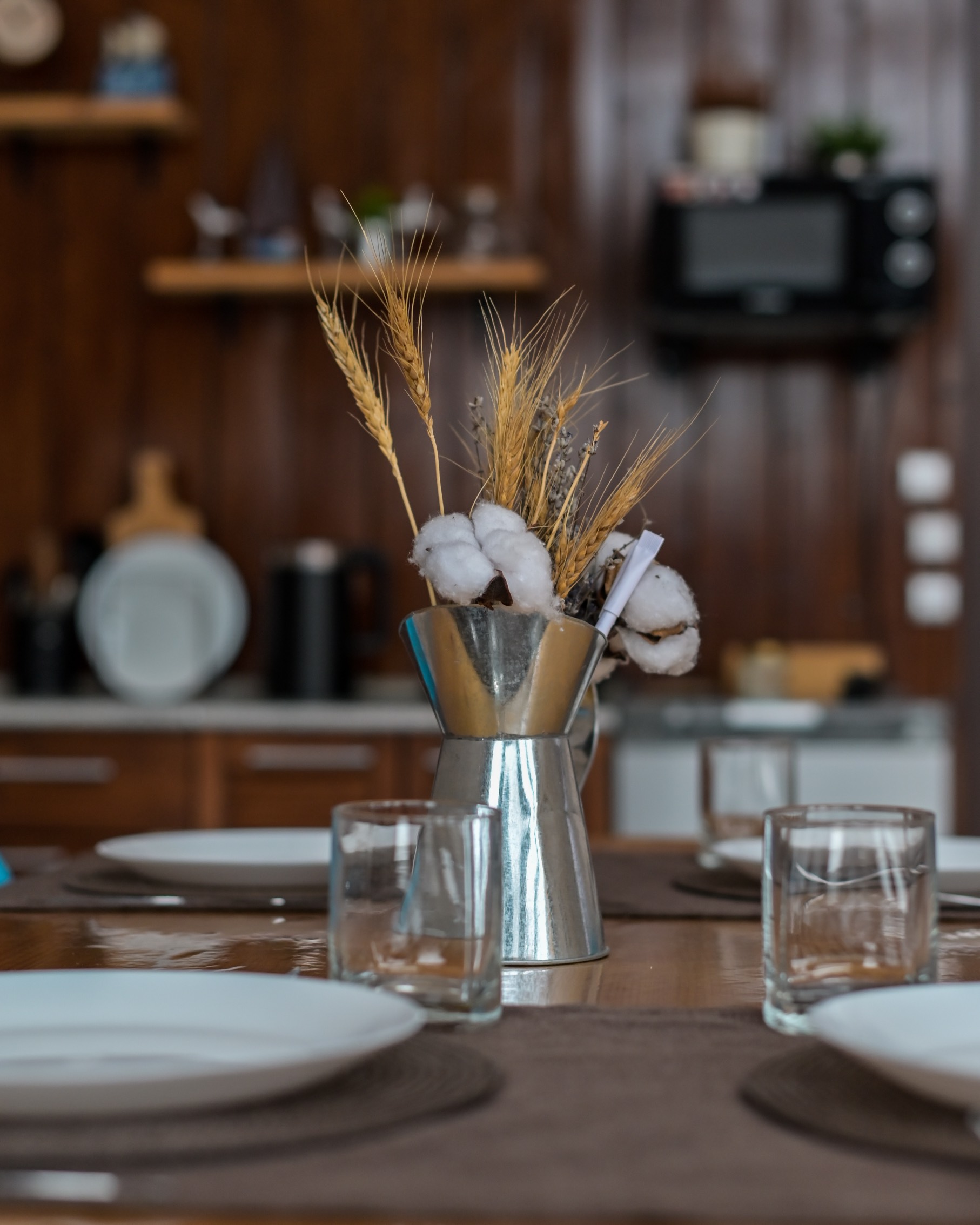 — большой обеденный стол для веселой компании или уютного завтрака (рассчитан до 6 человек);