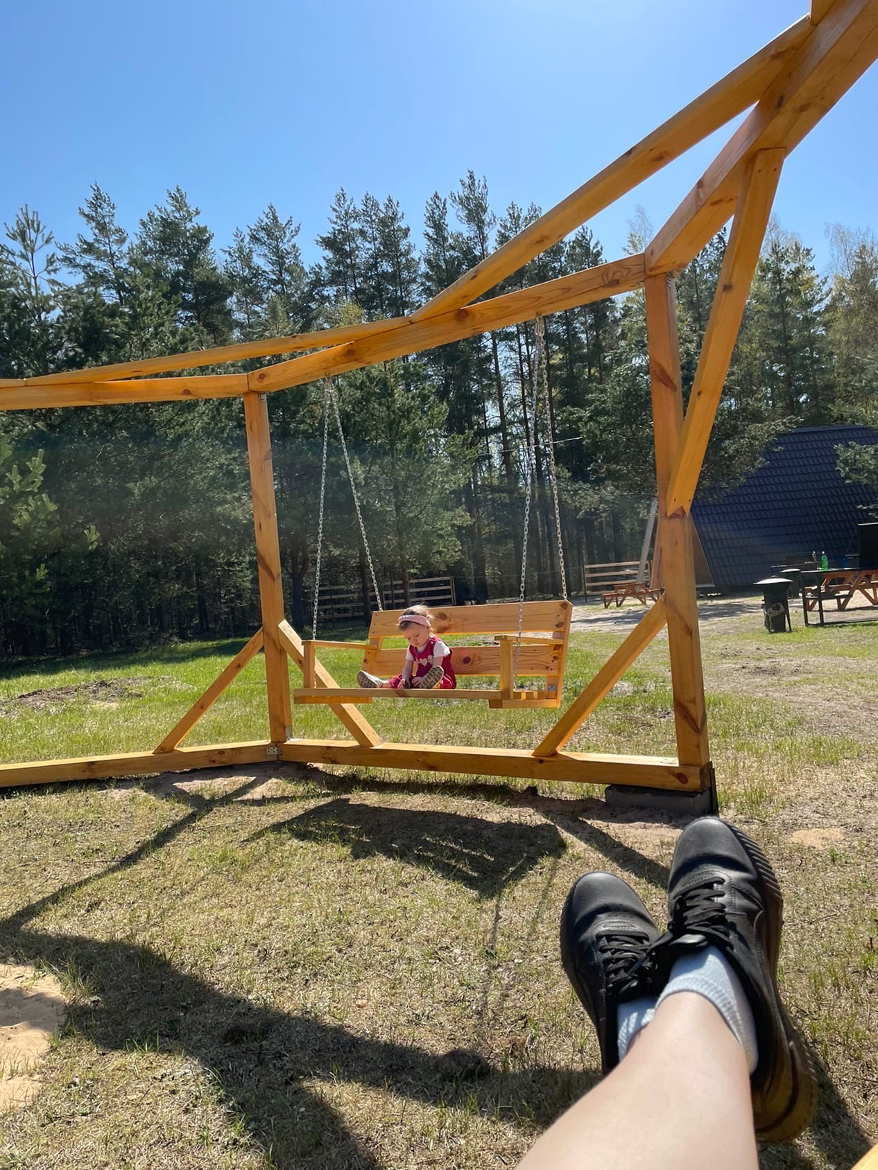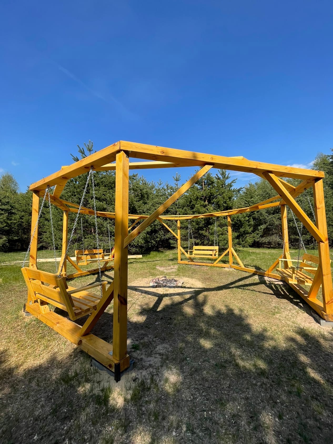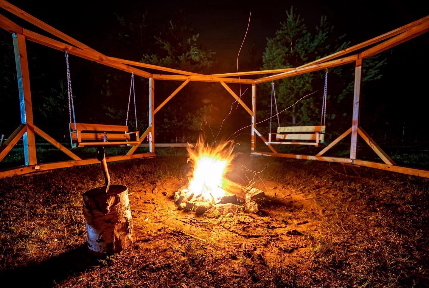 - Большая костровая зона с качелями