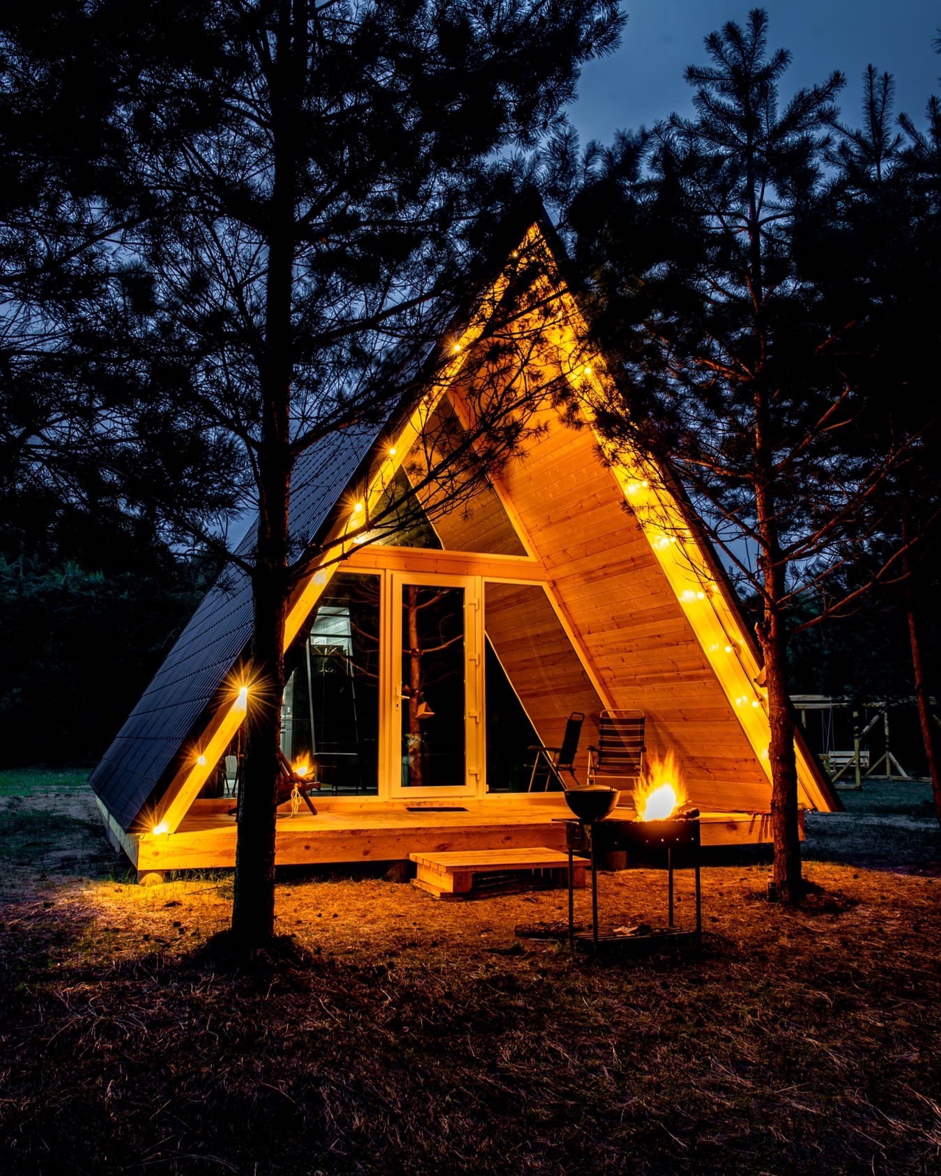Для любителей больших компаний можем предложить три домика в стиле А-фрейм, которые разместят в себе до 12 гостей!
