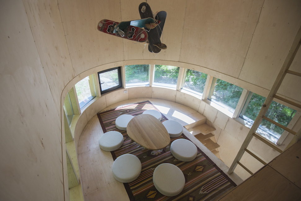 Арт-группа АЛЫЧА: «Проект во многом пересекается с вопросами, которые задавали себе конструктивисты в начале прошлого века, проектируя жизнь человека будущего. Мы решили позаимствовать кое-что из их опыта, сделав основной функцией дома – возможность кататься».