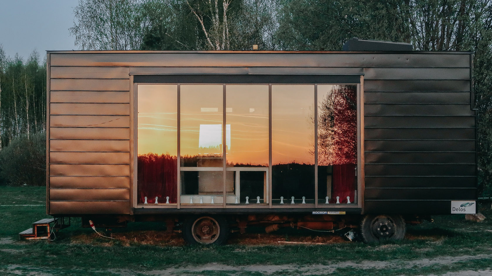 Передвижной дом на колёсах для актеров бродячего цирка. Расположен на дороге возле кафе «Угра». Дизайнерский интерьер в черных тонах предусматривает мгновенную трансформацию в интерактивное диско-пространство.