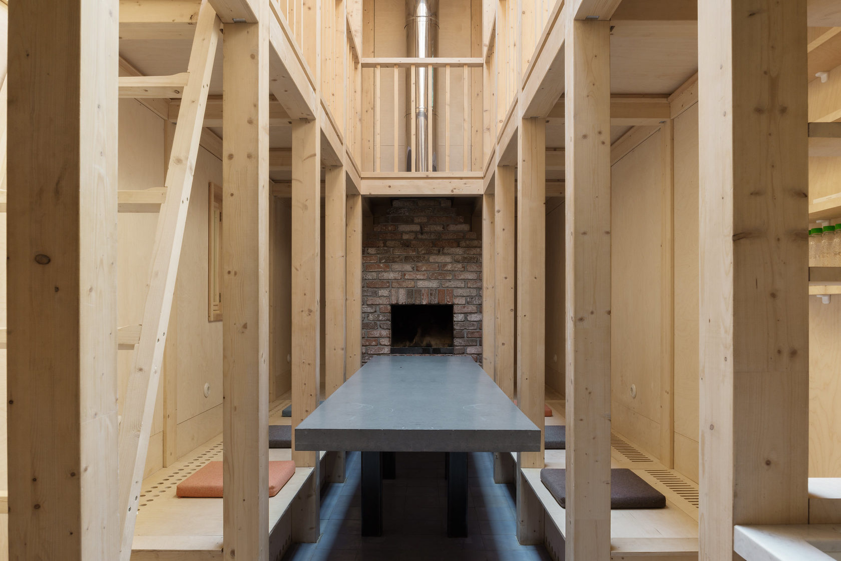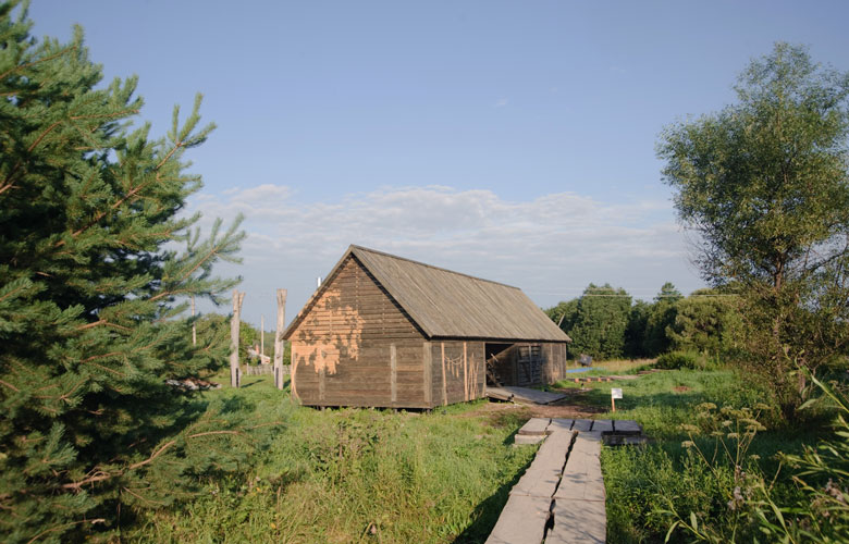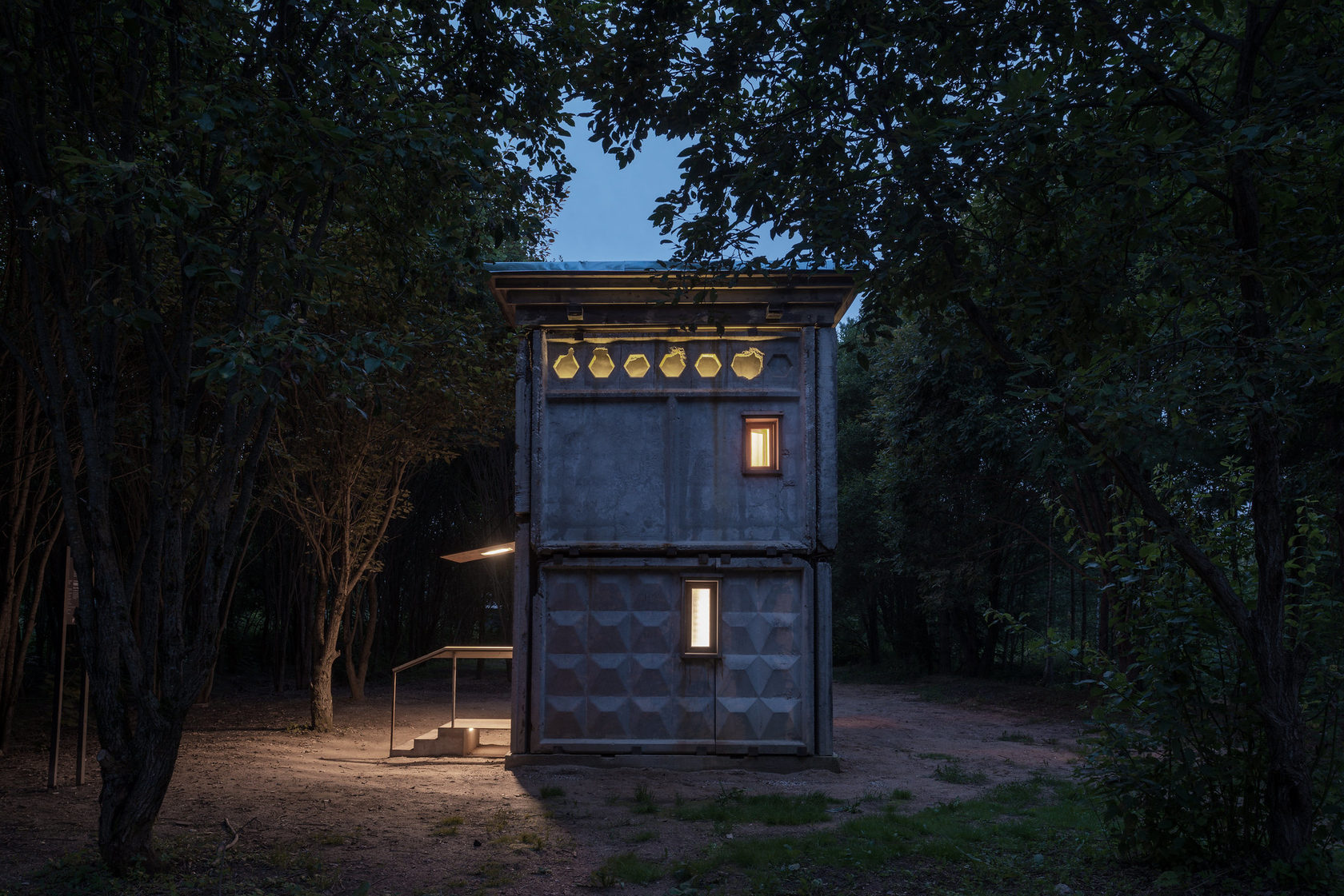 Московское архитектурное бюро MANIPULAZIONE INTERNAZIONALE: «Жизнь сарая — это застывшие и забытые предметы внутри и снаружи. Солнце выжгло его стены, оставляя отпечатки предметов и людей, деревьев и кустов, колёс и брёвен — всего того, что стояло и сидело вокруг сарая, и чего сейчас нет. Посмотри и вспомни, как это было и как это будет».