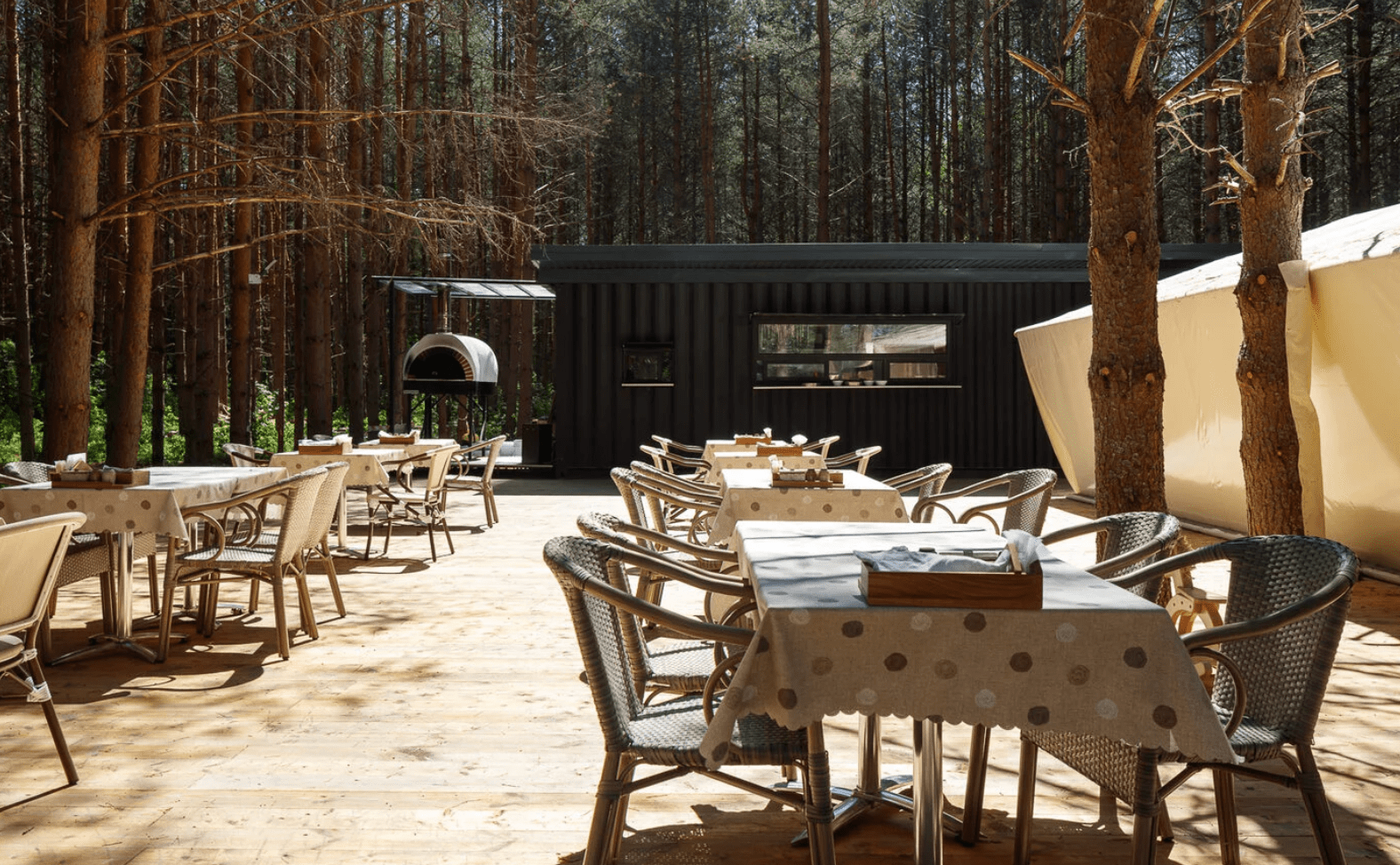 Пользуйтесь всеми возможностями эко-отеля во время стоянки. Вы можете пообедать или поужинать в ресторане авторской кухни, прогуляться по лесу, взять SUP-борды или велосипеды, сходить в баню, забронировать домик и отдохнуть после дороги.