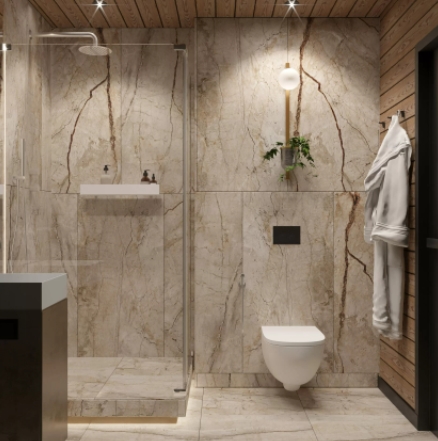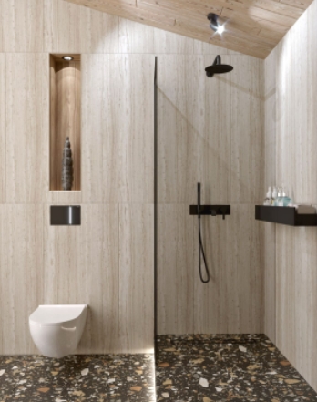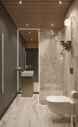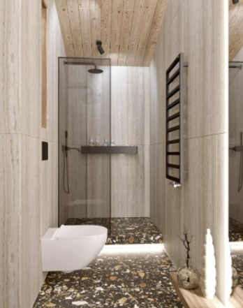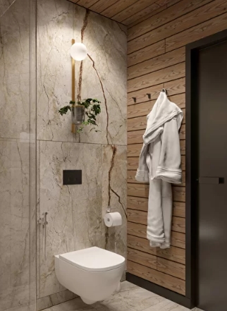 На каждом этаже — своя ванная комната с современной сантехникой, укомплектованная косметикой премиум-класса, свежими полотенцами, тапочками и мягкими халатами.