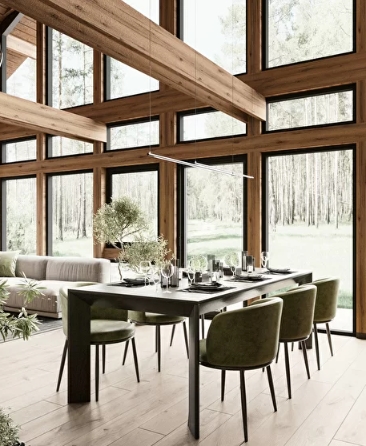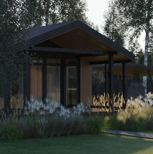 На территории эко-отеля расположено 2 одноэтажных коттеджа площадью 85 кв.м, вместимость 8 человек. Дома построены в современном европейском стиле и органично вписываются в окружающий ландшафт.