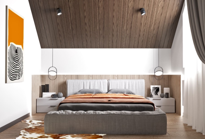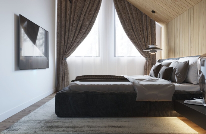 Интерьер спален выполнен в скандинавском стиле, в каждой из них установлена большая кровать с удобным матрасом и мягкими подушками. Спален - 2.