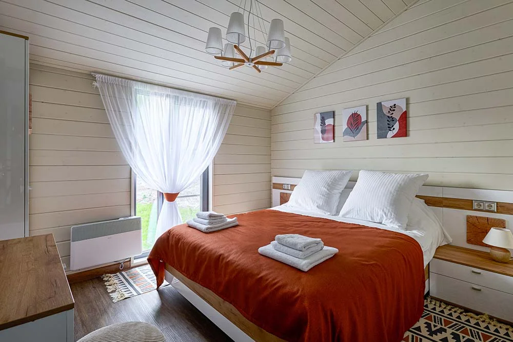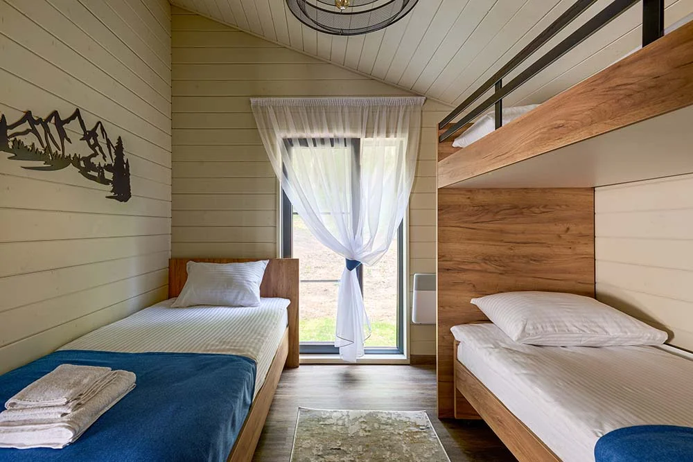 В каждом доме могут разместиться до 6 человек, есть две отдельных спальни.