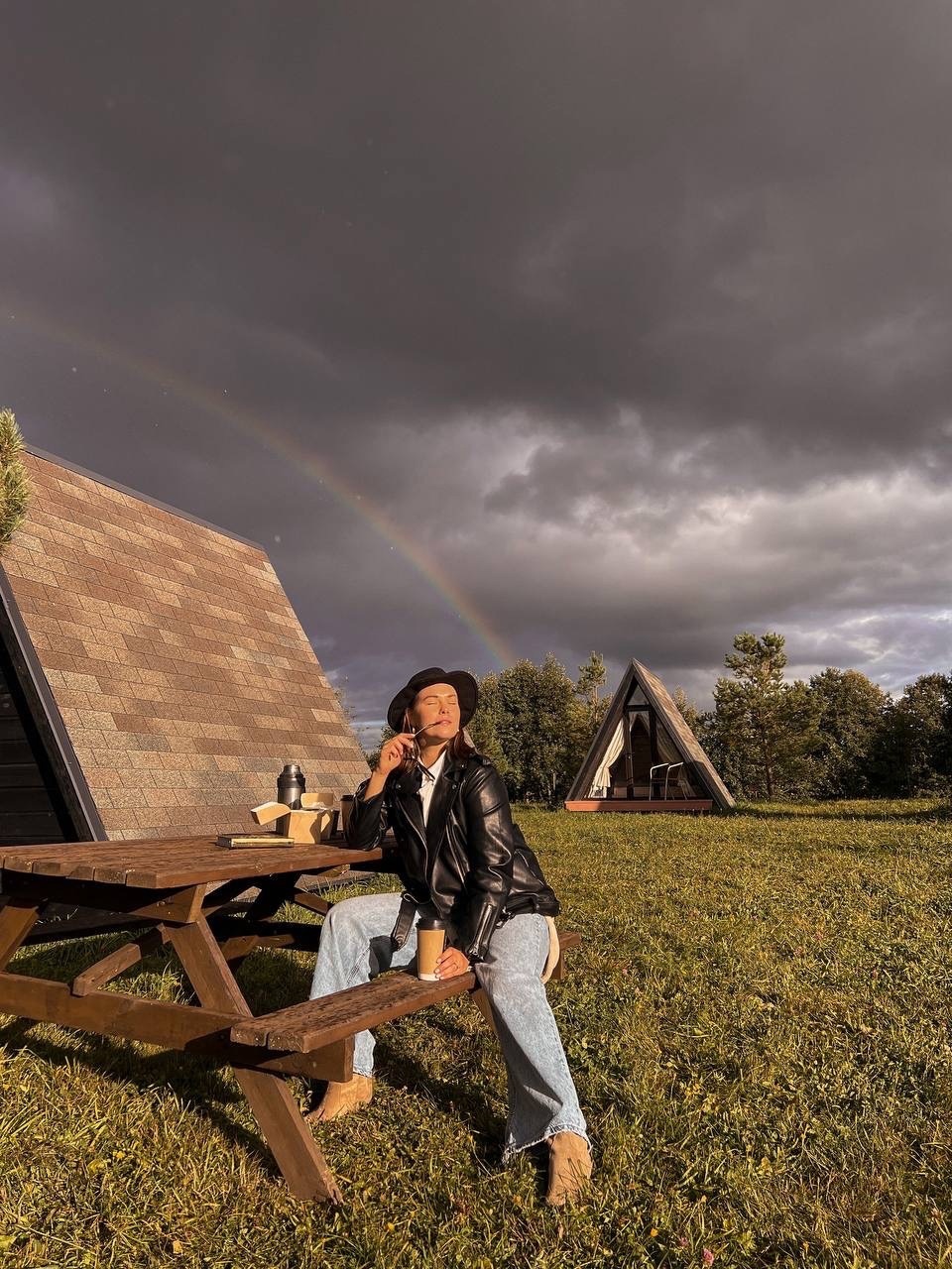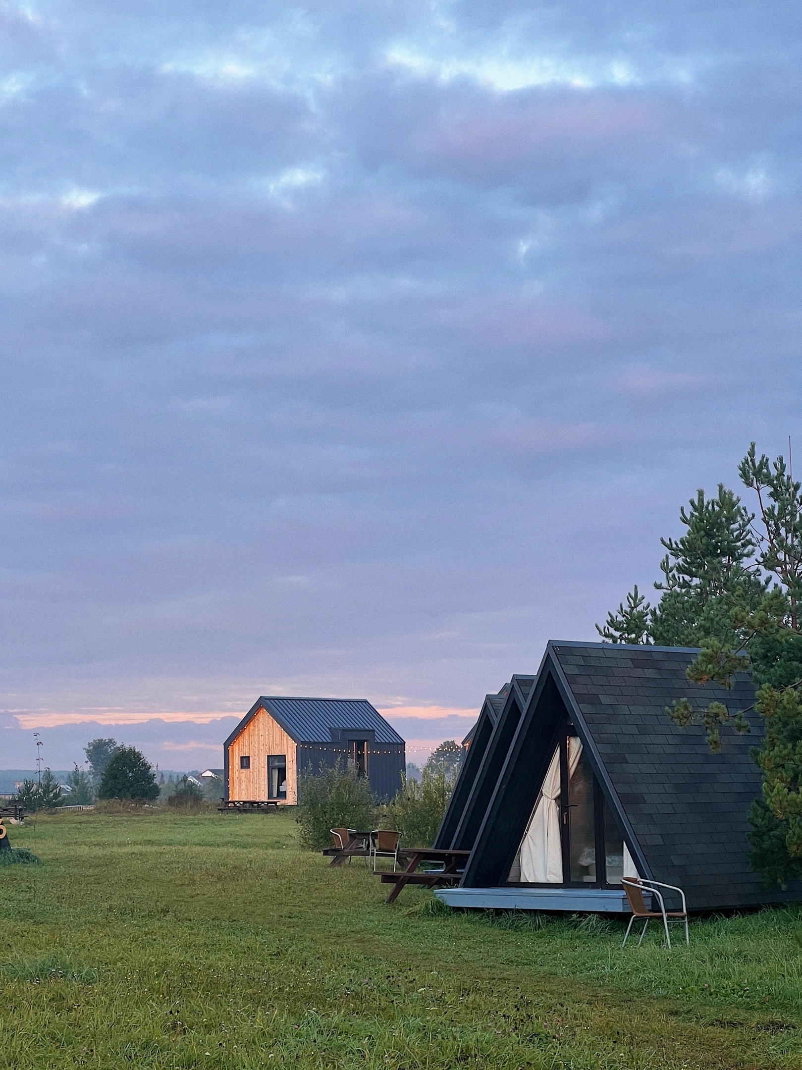 Маленький летний, но утепленный домик-вигвам на двоих, современный формат отдыха на приоде с комфортом. Всего на территории 6 А-фреймов