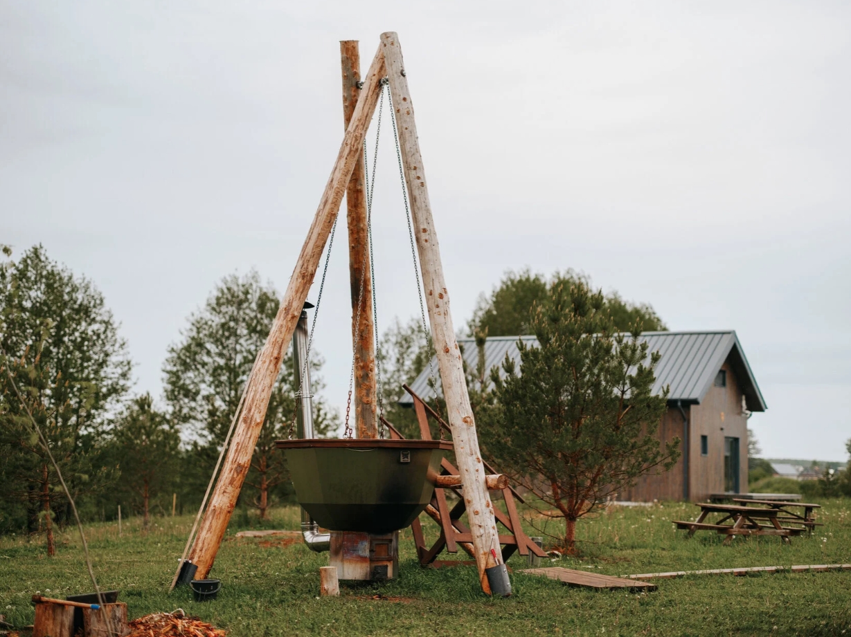 На большой зеленой территории экопарка гости могут насладиться европейским комфортом домиков, согреться в сибирском чане, понаблюдать за волшебными закатами и рассветами под хруст углей из мангала.