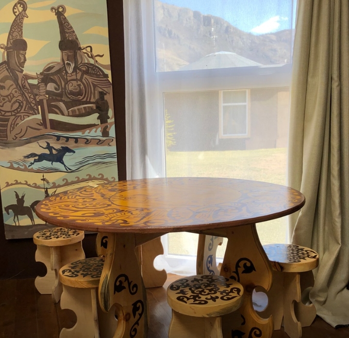 - Круглый традиционный стол и табуретки