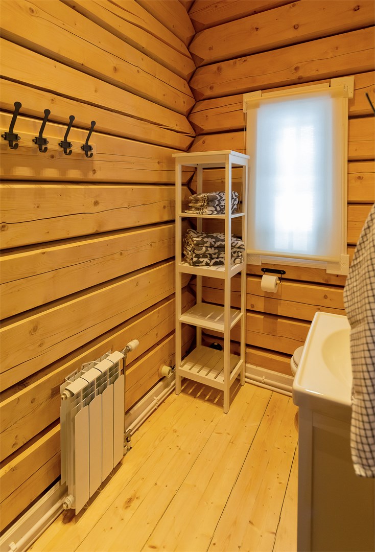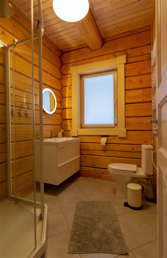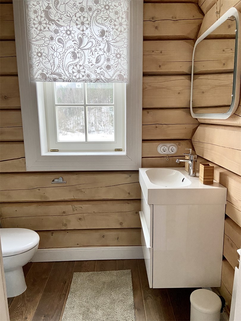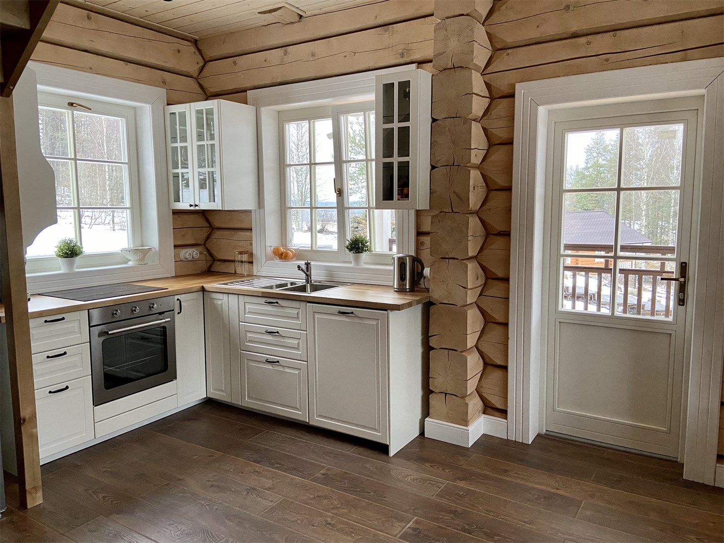 2 этажа с высокими потолками на первом этаже из экологически чистого цельного бревна, с использованием технологии норвежский лафет. Дом включает в себя полностью оборудованную кухню с электрической плитой на 4 конфорки, духовкой, посудомоечной машиной, микроволновой печью, холодильником и стиральной машиной с функцией сушки. В наличии есть вся необходимая посуда - тарелки, стаканы, бокалы, фужеры, сковородки, кастрюли, столовые приборы. Так же имеется миксер, электрический чайник, мультиварка. Обеденный стол на 8 человек. В гостиной комфортный диван, камин на дровах, телевизор с плоским экраном и подключенным онлайн ТВ, высокоскоростной интернет Wi-Fi по выделенной оптоволоконной линии.