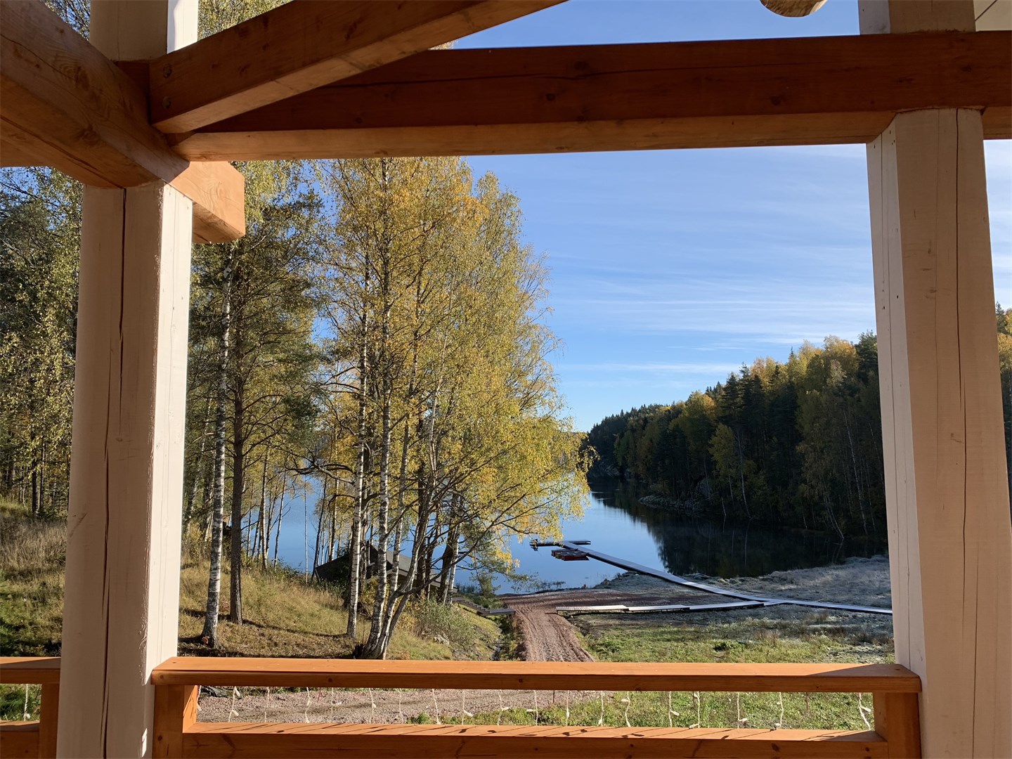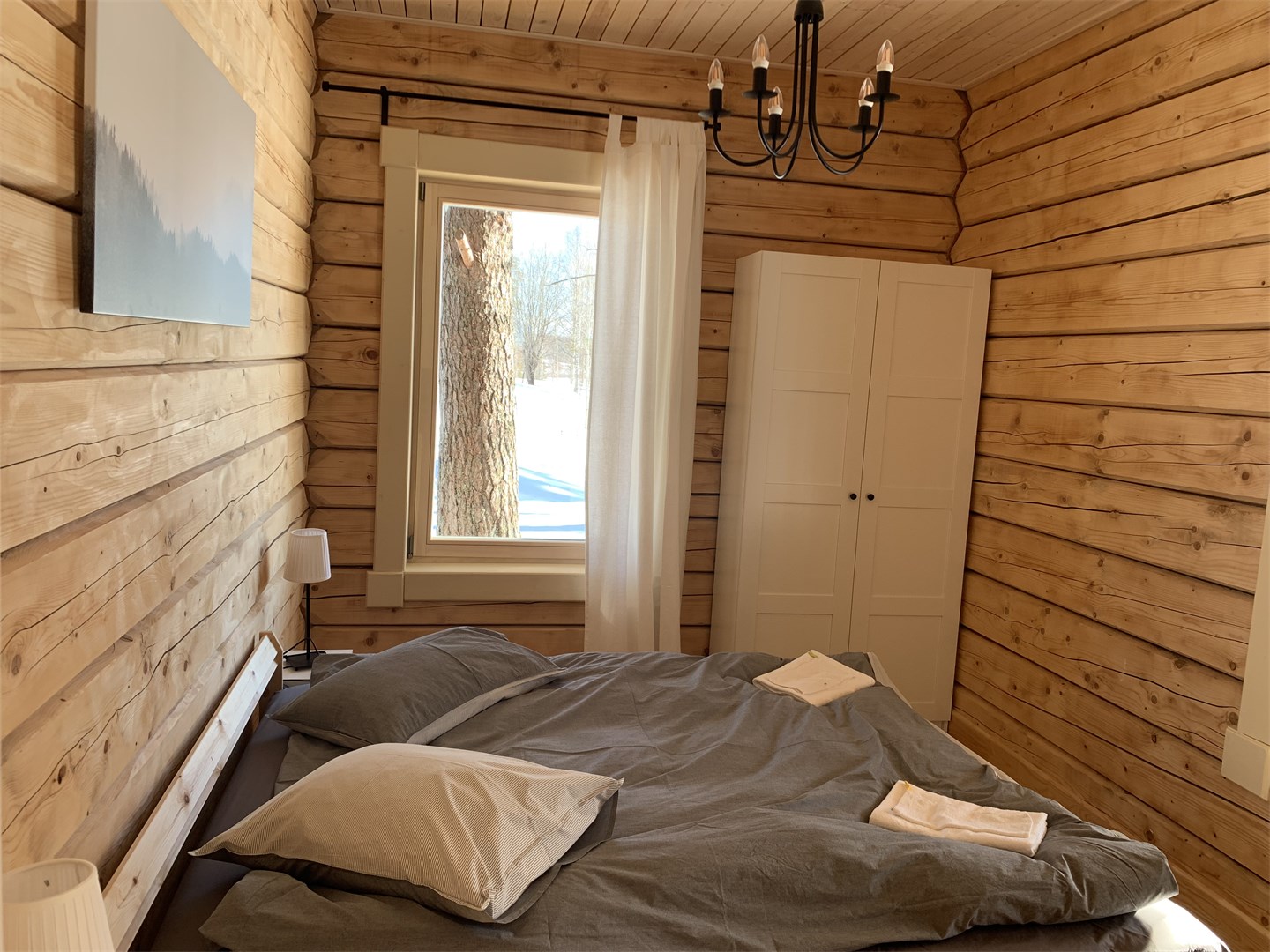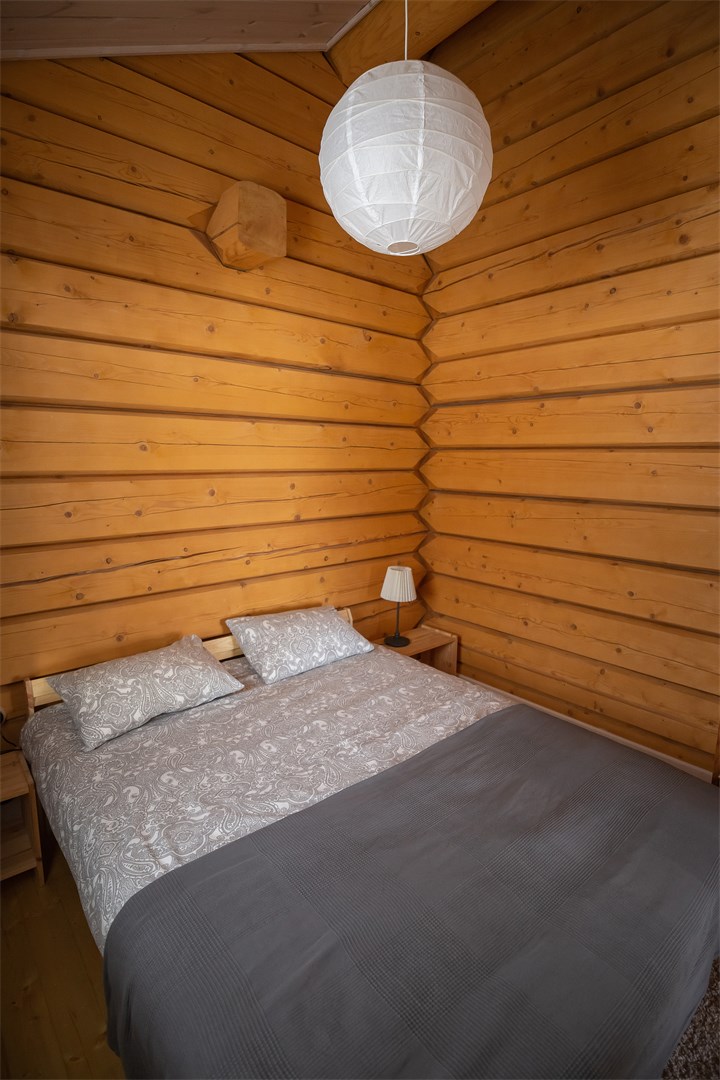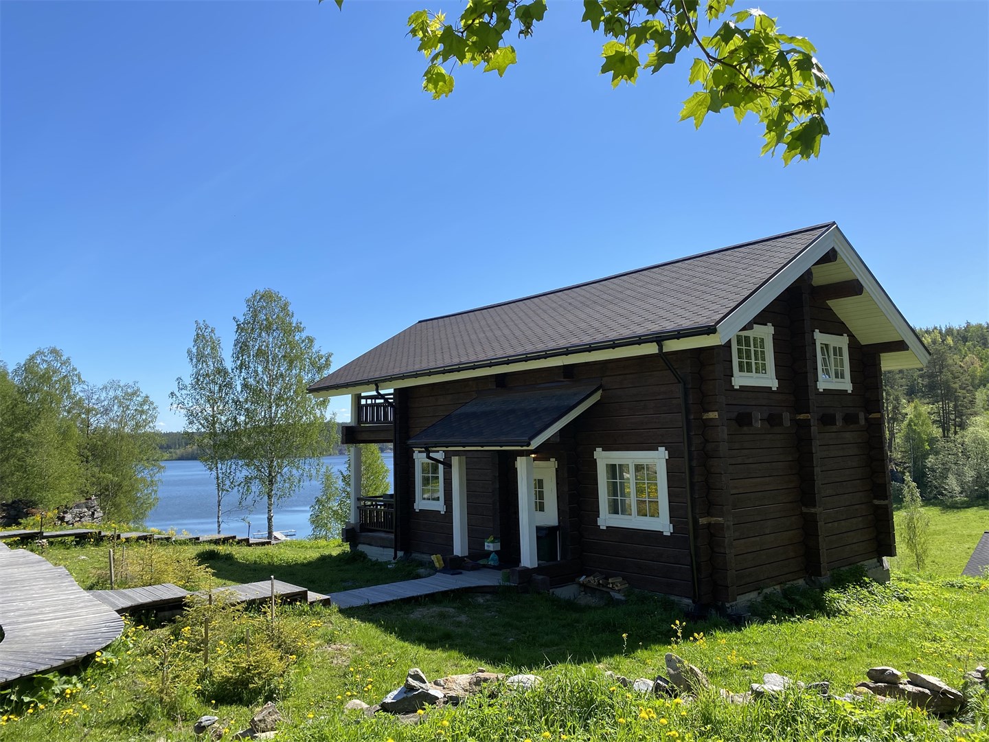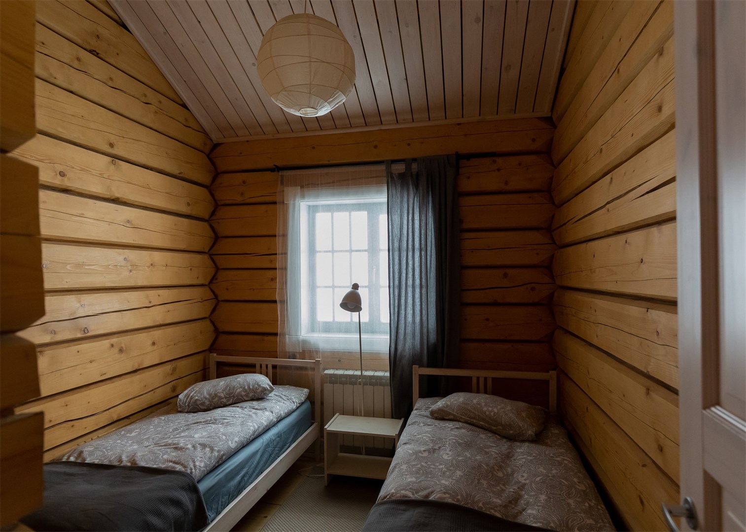 Дом для отдыха с двумя отдельными спальнями и одной открытой спальней на втором этаже, расположенный на скале берега Карельского озера, с видом на озеро и скалы готов принять гостей по системе 8+1 (8 человек могут расположиться в спальнях - две комнаты на первом этаже и спальня открытого типа на втором этаже с двумя двуспальными кроватями, 1 дополнительное место расположено в гостиной на диване со спальным местом).