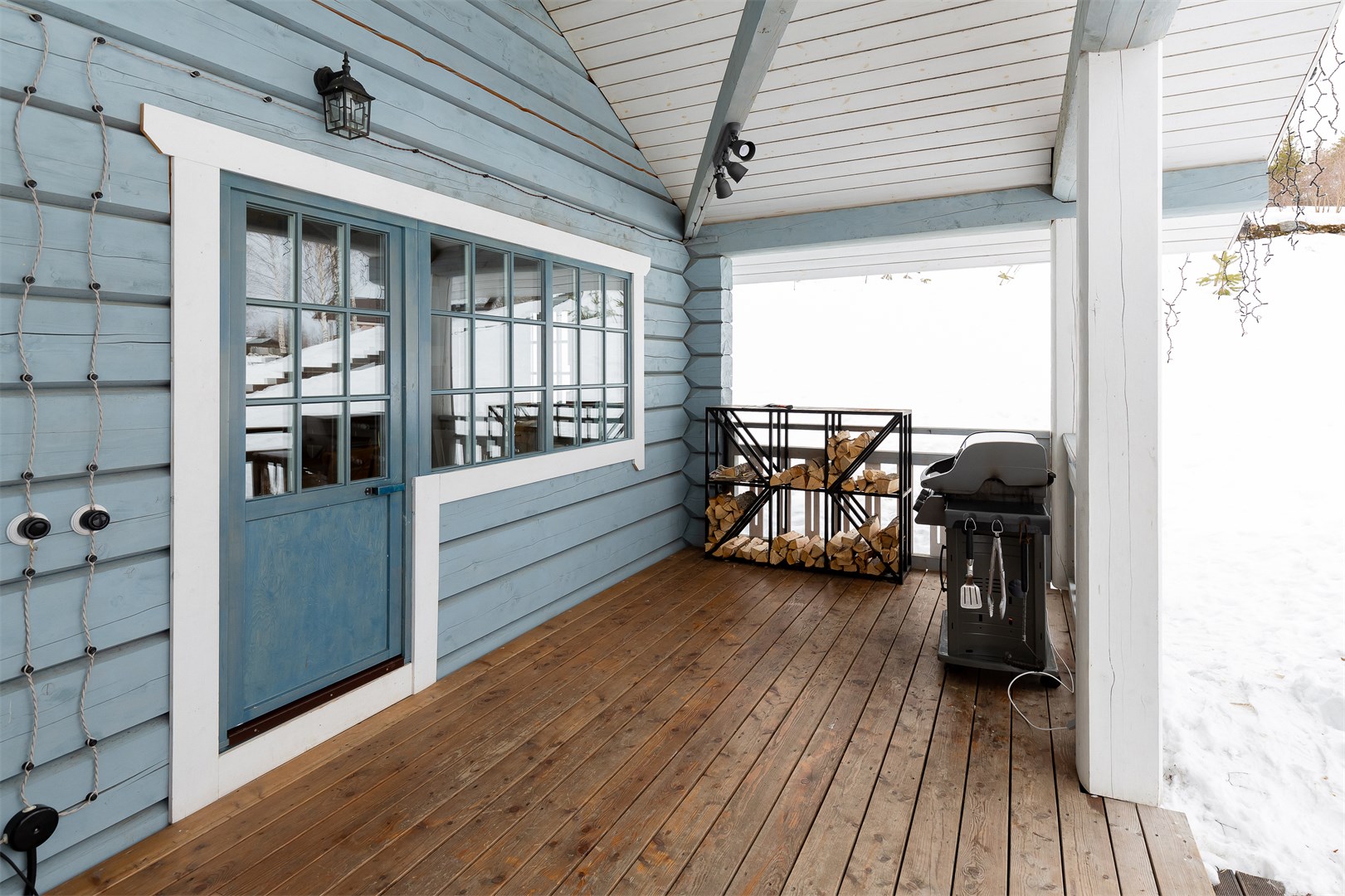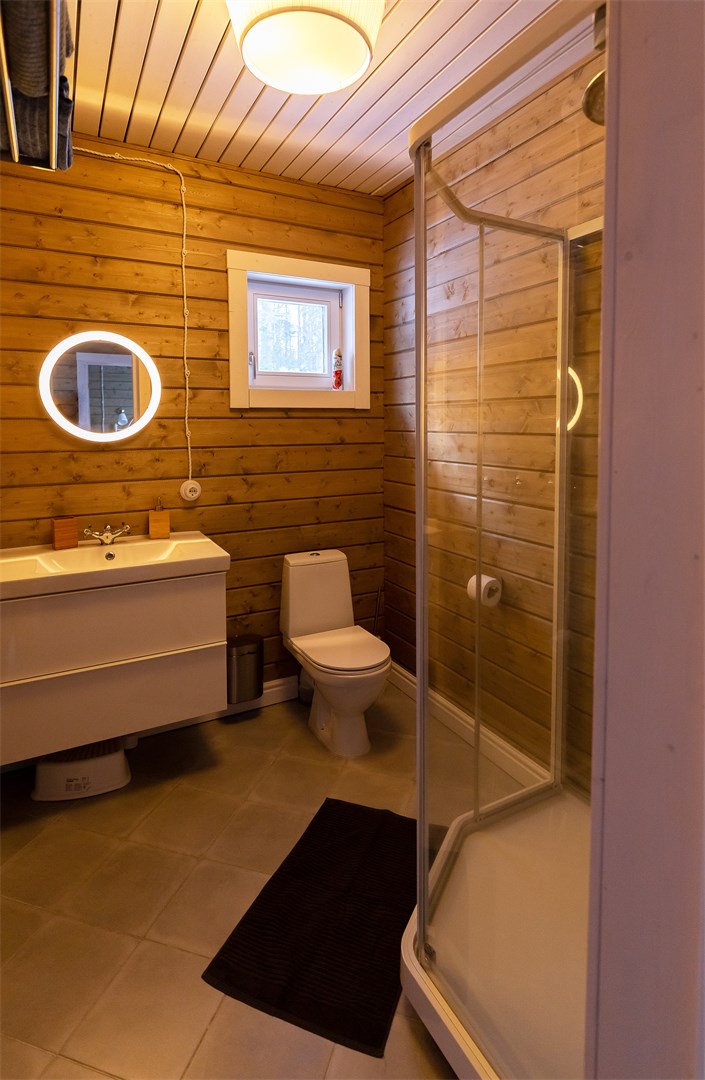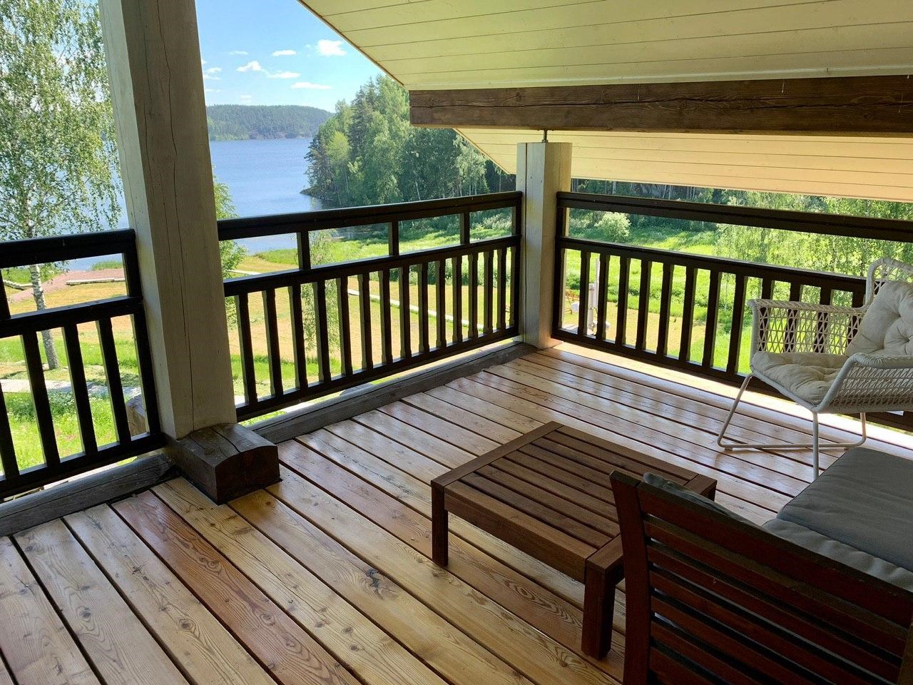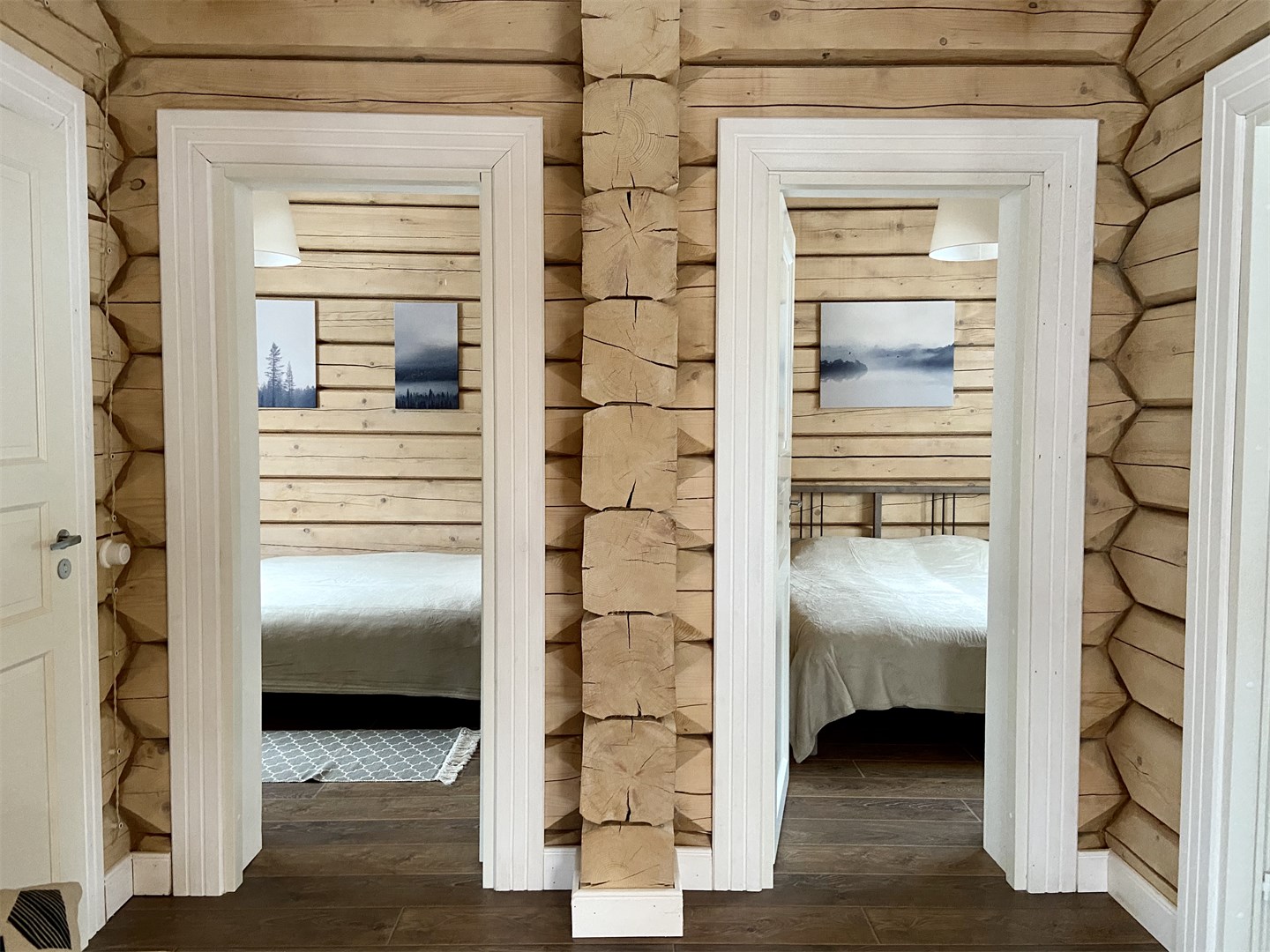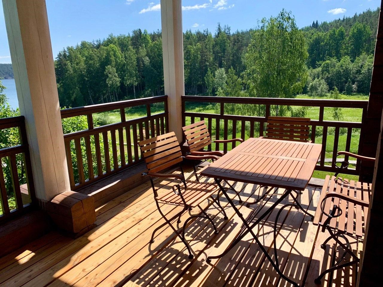 Дом для отдыха с двумя отдельными спальнями и одной открытой спальней на втором этаже, расположенный на скале берега Карельского озера, с видом на озеро и скалы готов принять гостей по системе 8+1 (8 человек могут расположиться в спальнях - две комнаты на первом этаже и спальня открытого типа на втором этаже с двумя двуспальными кроватями, 1 дополнительное место расположено в гостиной на диване со спальным местом).