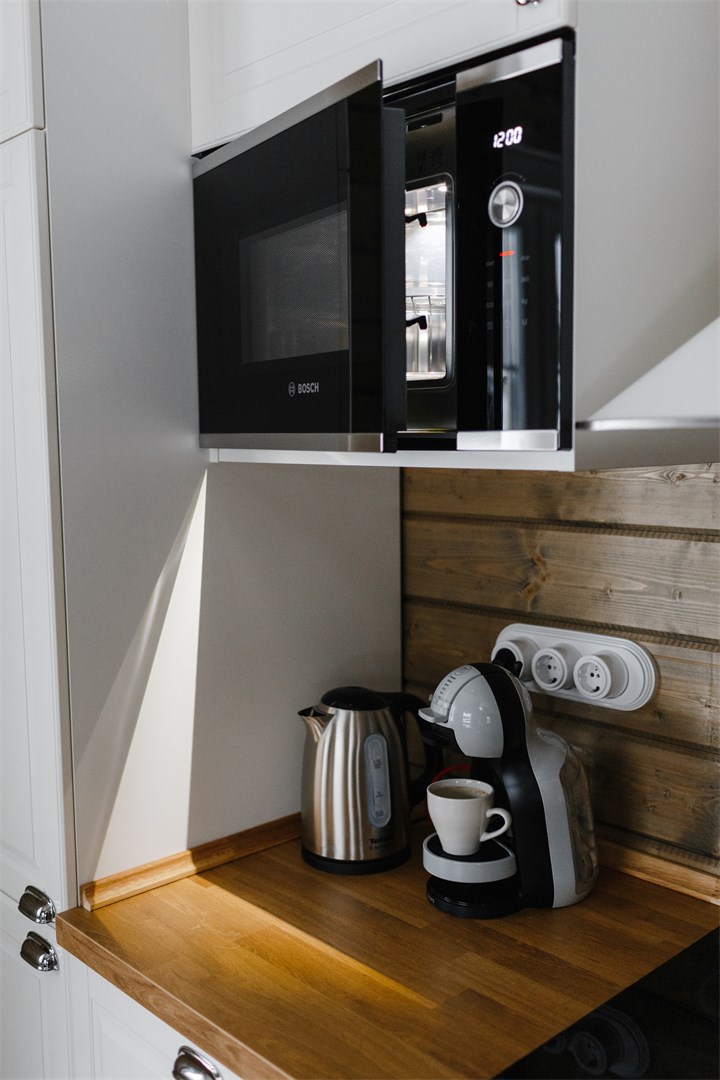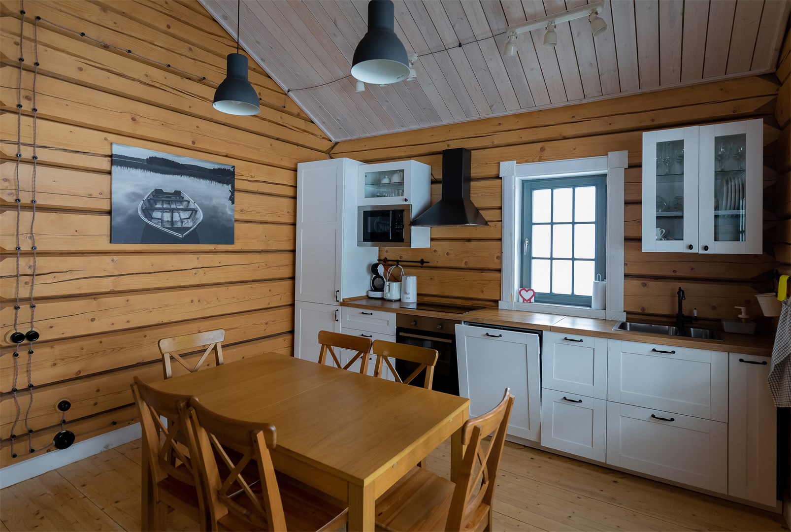 Дом включает в себя полностью оборудованную кухню с электрической плитой на 4 конфорки, духовкой, посудомоечной машиной и холодильником. В наличии есть вся необходимая посуда - тарелки, стаканы, бокалы, фужеры, сковородки, кастрюли, столовые приборы. Так же имеется миксер, электрический чайник, мультиварка. Обеденный стол на 6 человек с возможностью увеличения. В гостиной комфортный диван с 2 дополнительными полноценными спальными местами, камин на дровах, телевизор с плоским экраном и подключенным Онлайн ТВ, высокоскоростной интернет Wi-Fi по выделенной оптоволоконной линии, а также два кресла-качалки.