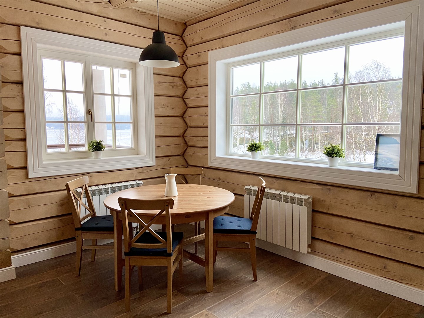 Дом для отдыха с тремя отдельными спальнями, расположенный на берегу Карельского озера, с видом на озеро и скалы готов принять гостей по системе 8+1 (8 человек могут расположиться в спальнях, 1 дополнительное место оборудовано в гостиной второго этажа).