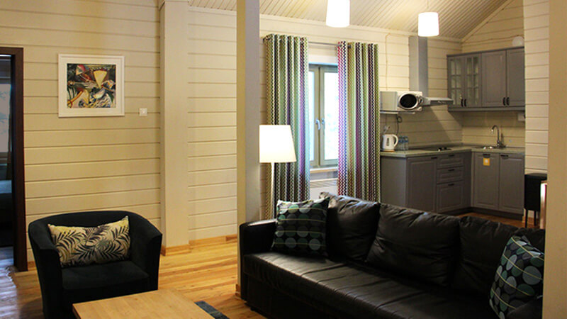 - 2 гостиные (телевизор, мини-кухня - холодильник, микроволновая печь, электрический чайник);