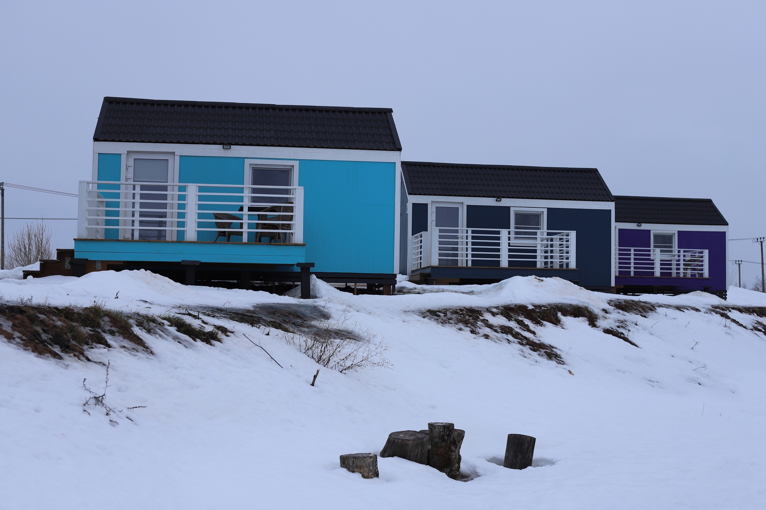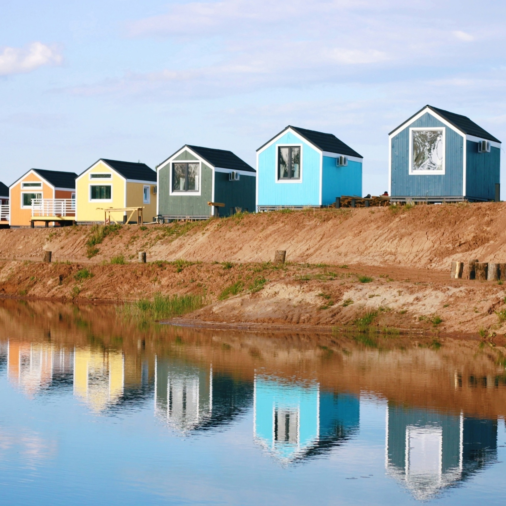 Уютные домики на первой линии озера со всеми удобствами. В каждом домике смогут комфортно разместиться двое взрослых и двое детей.