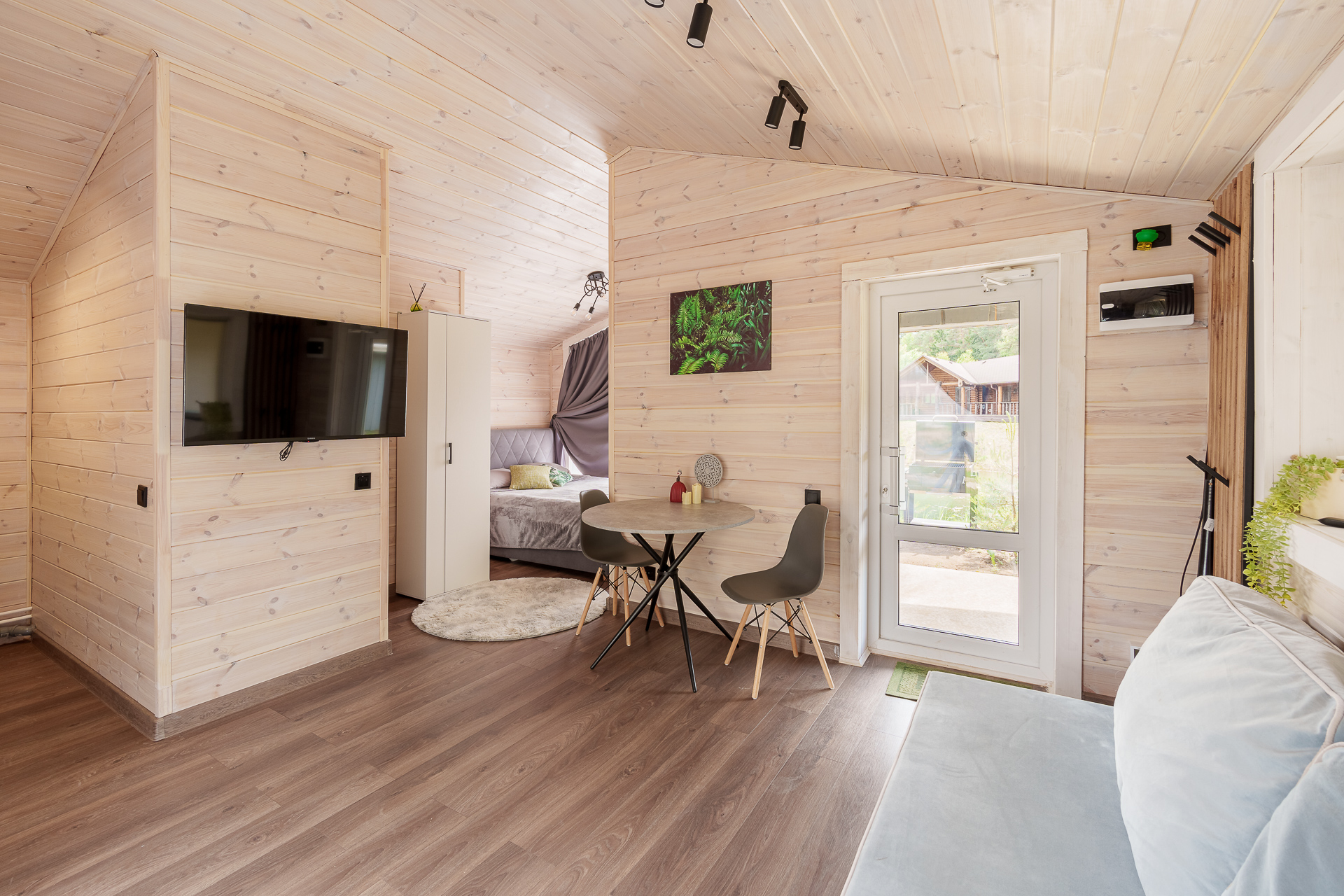 Здесь есть всё необходимое для комфортной жизни и отдыха: общая зона, ванная комната, кухня и спальня в светлых тонах.
