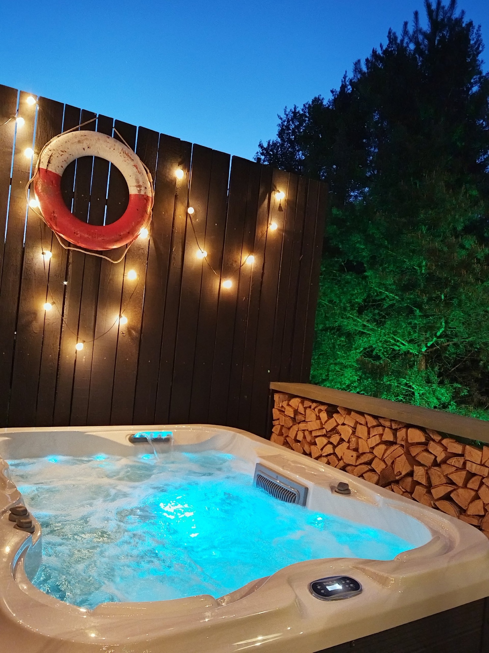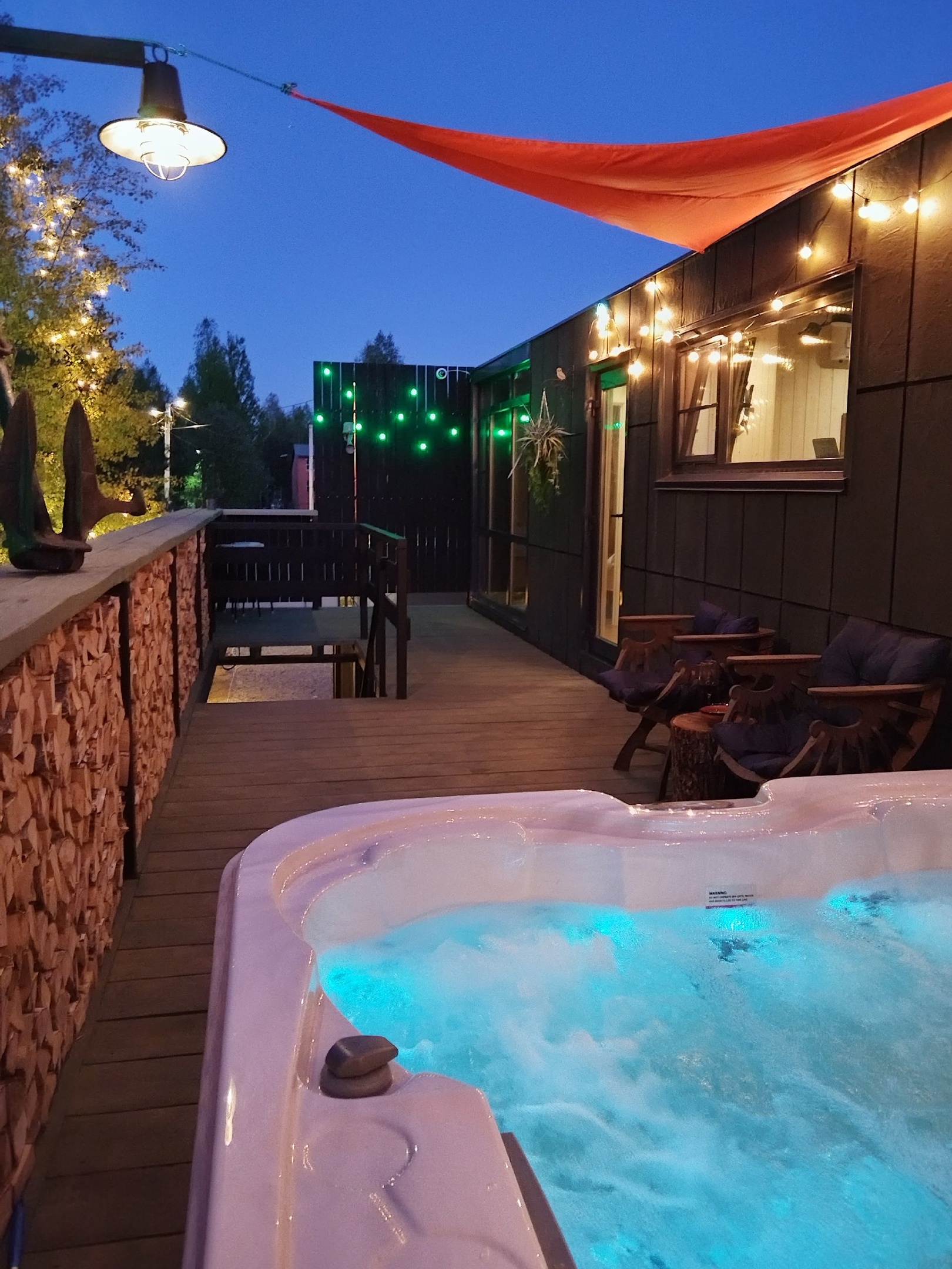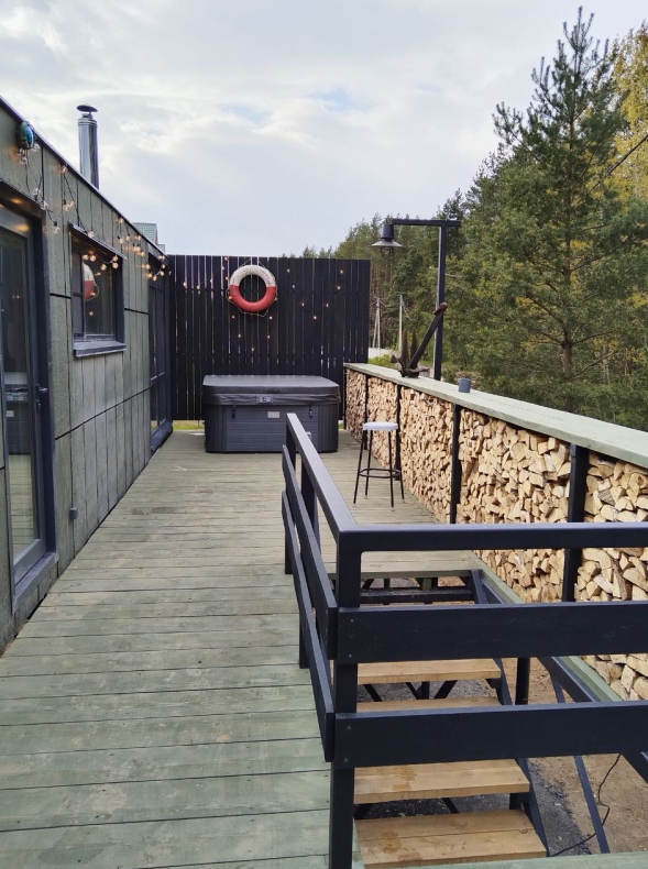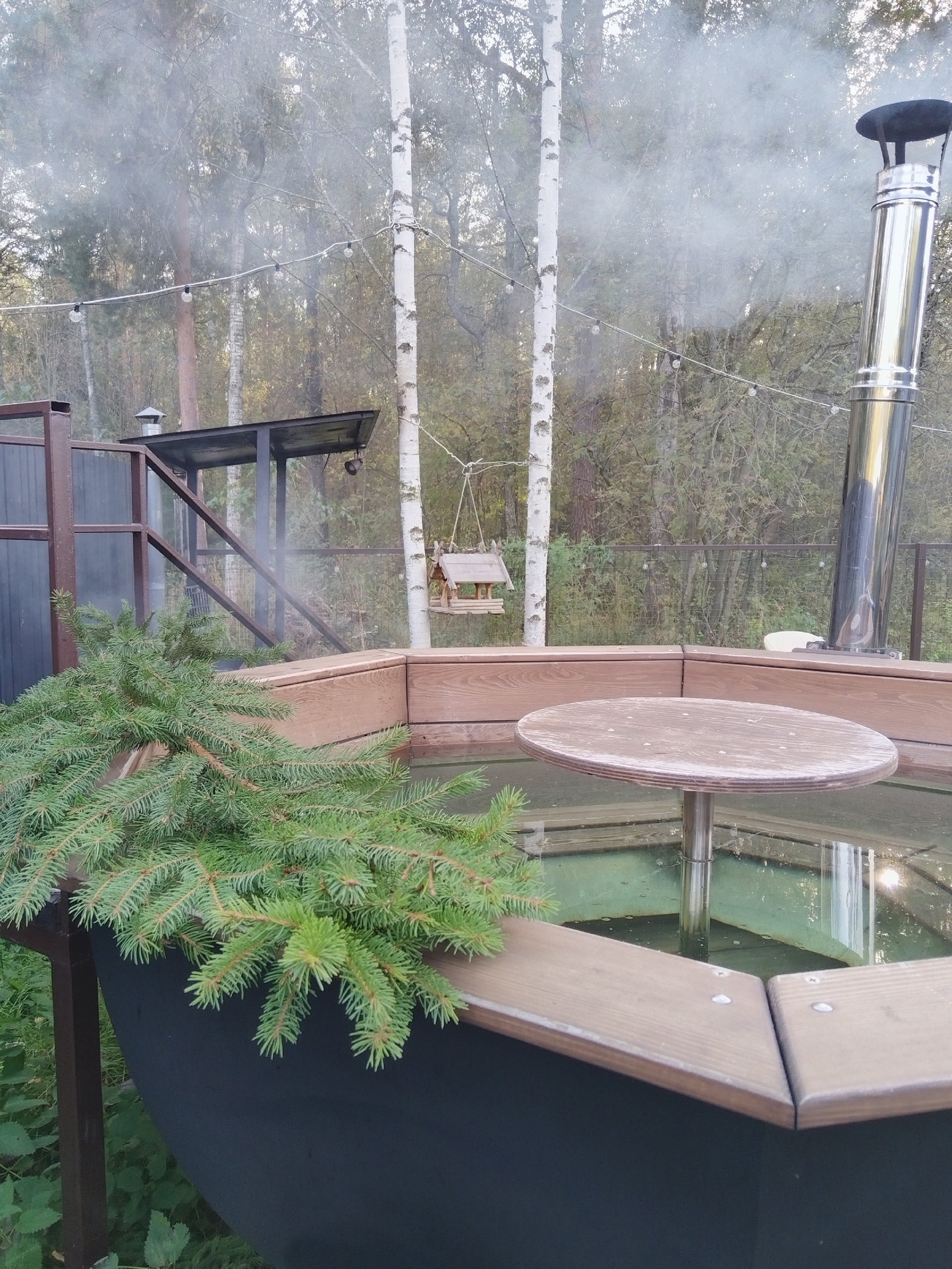 У каждого дома своя приватная территория с выходом в лес, мангал с местом для казана и большой банный чан.