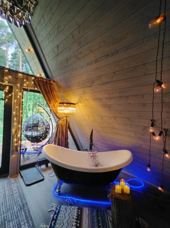 Внутри домов — современный интерьер и все удобства для комфортного отдыха. Здесь вы отдохнёте от городской суеты и насладитесь природой.