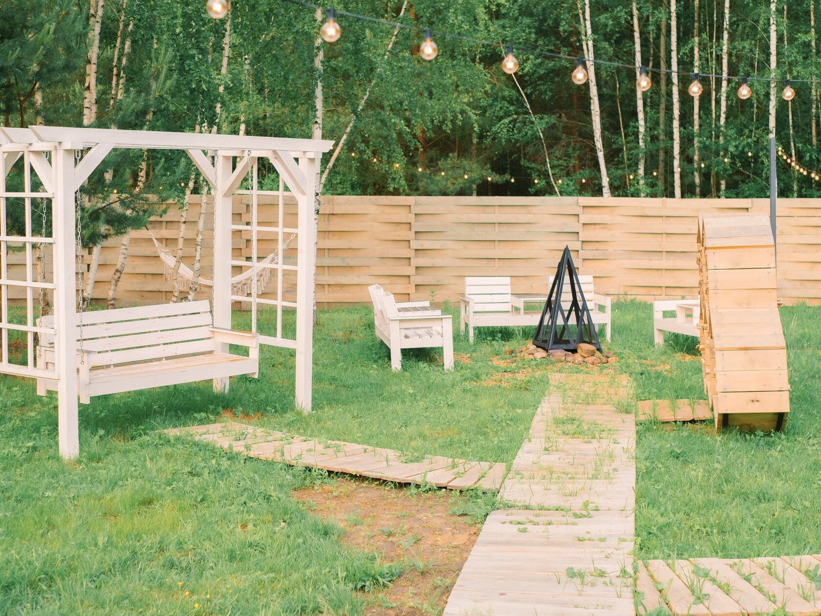 Для тех, кто желает попариться в баньке, подойдут домики «Гармония» и «Пчёлка». На каждом участке есть качели, крытый мангал и уютное место с кострищем.