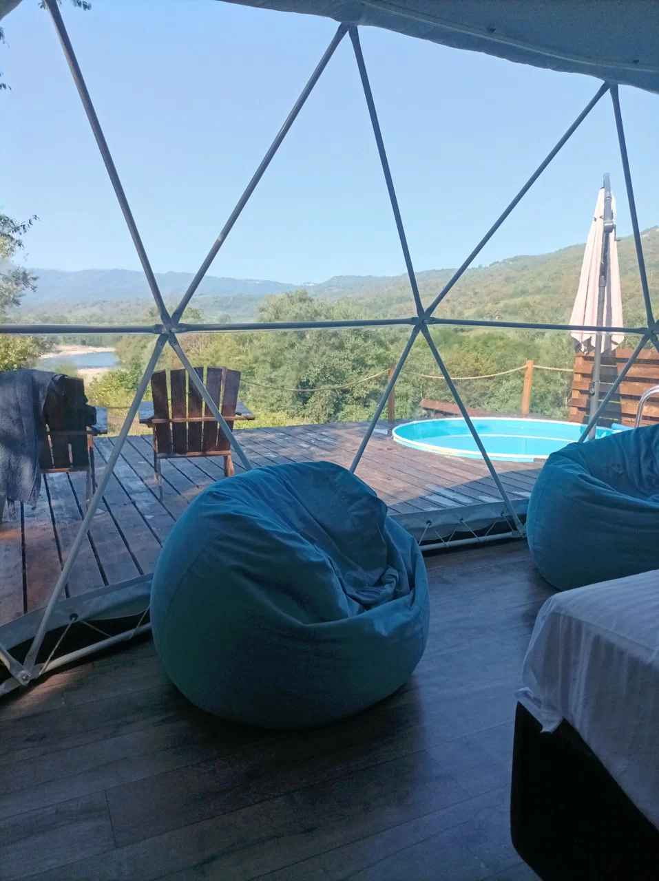 Глэмпинг Даховские Сферы – отличное место для отдыха и уединения на природе в тихом уголке станицы Даховская. Глэмпинг находится в живописном месте, а именно на обрыве скалы. Здесь вы не увидите привычных домов и создающих лишний шум городских построек. Только шепот природы Адыгеи, потрясающий вид на горы и реку Белая, неповторимая атмосфера и ваш идеальный отдых в комфортных сферах с панорамным остеклением и продуманным интерьером. На территории Даховских Сфер находятся три домика, отделенных друг от друга и расположенных на расстоянии полной изоляции от соседей и персонала.