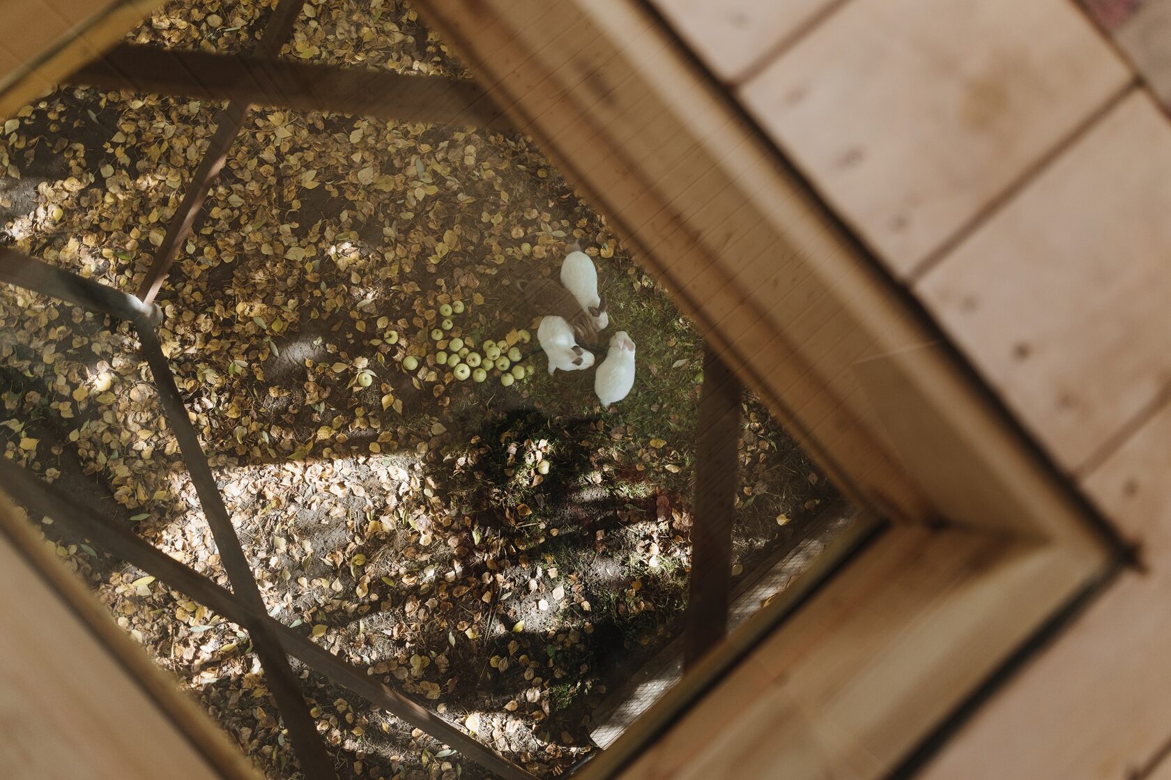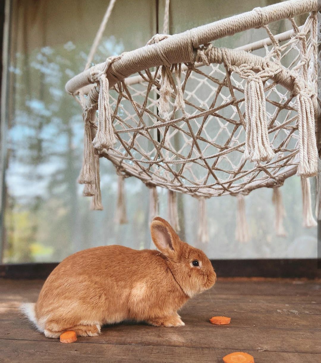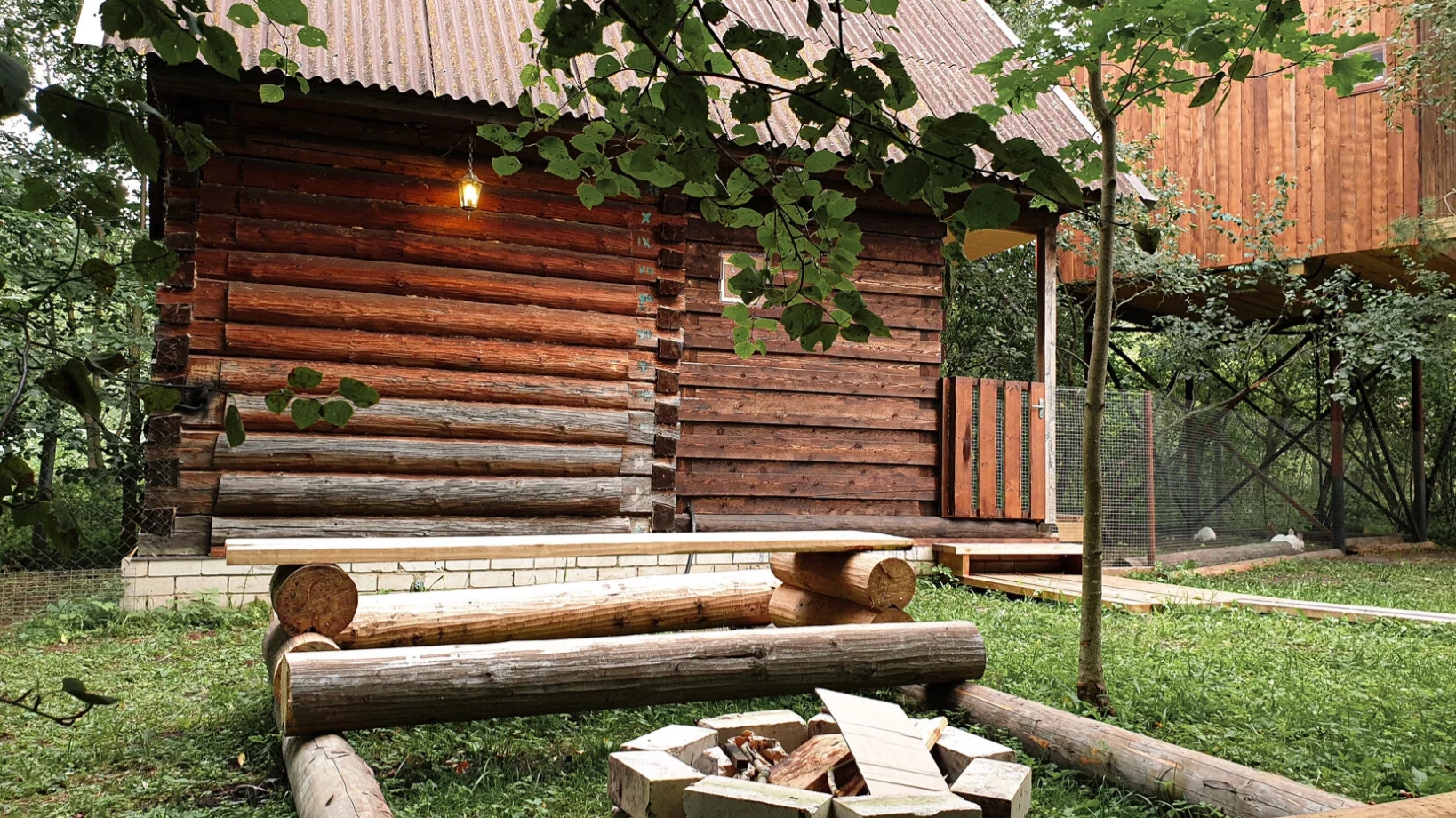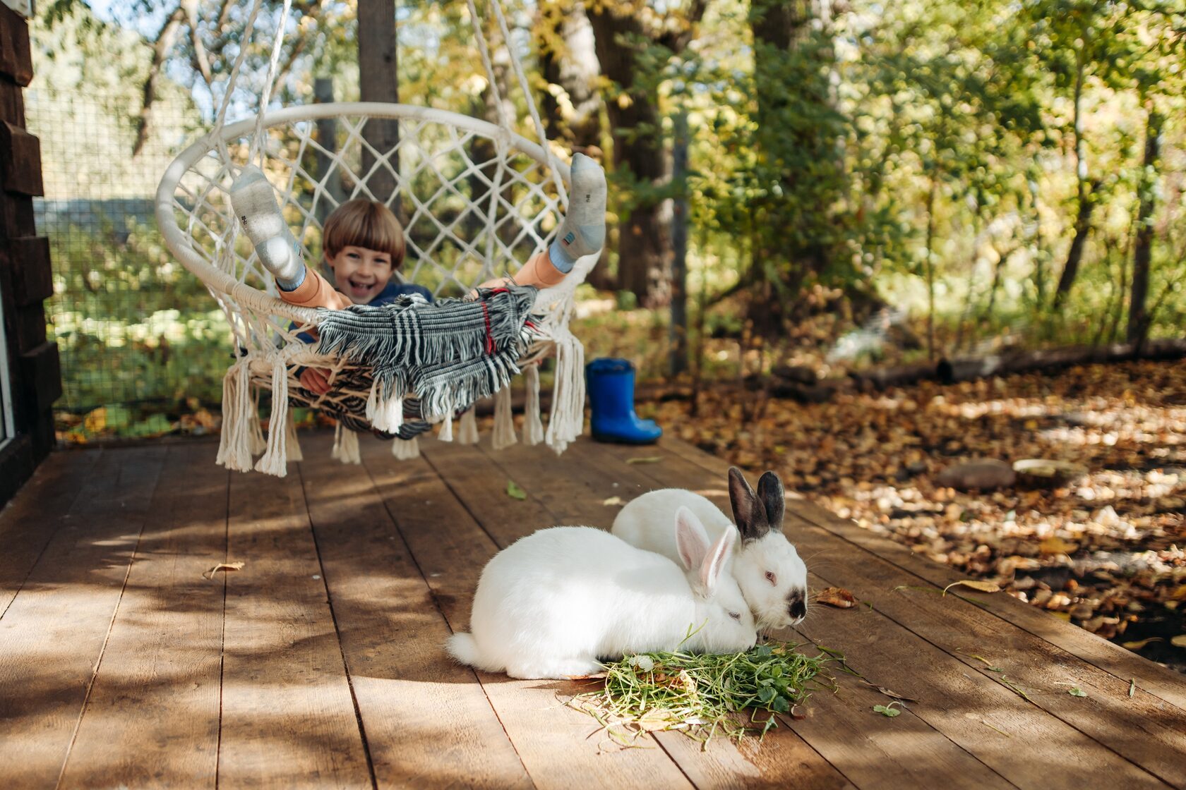 Летом возле домика живет семья кроликов, за их жизнью можно наблюдать через панорамное окно или сидя на веранде. Кроликов можно кормить и гладить.