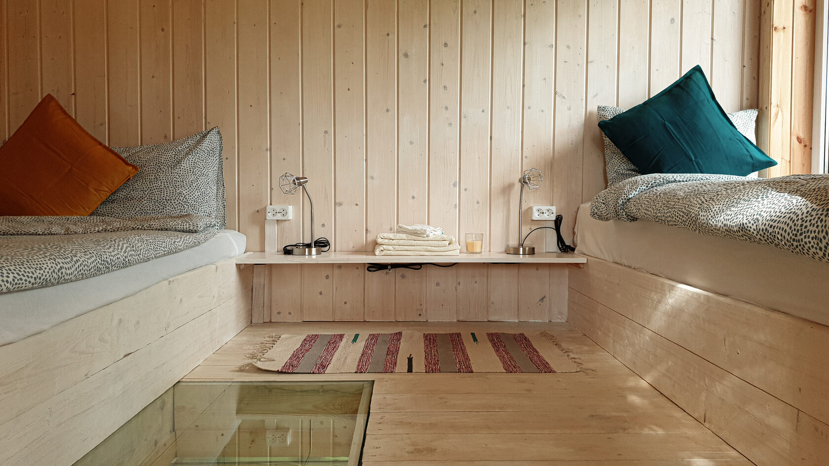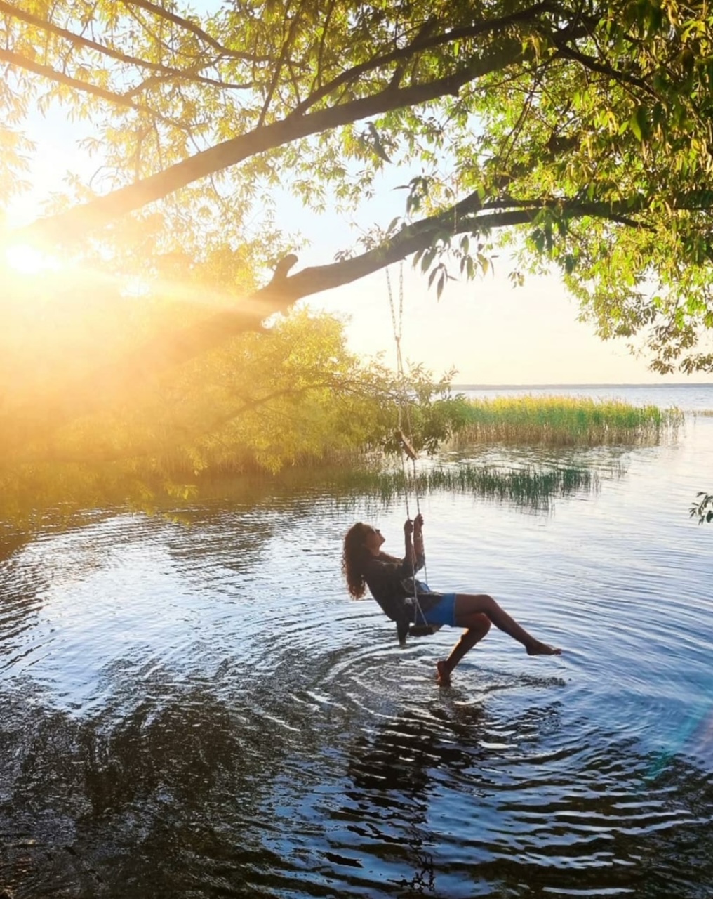 Озеро, на берегу которого расположен глэмпинг, уникально. Оно полностью окружено обильными зарослями камыша и лишь изредка радует хорошим песчаным заходом.Команда глэмпинга ежедневно ухаживает за берегом и прилегающей территорией, делая этот пляж лучшим на озере. Здесь гости могут насладиться купанием, загоранием и другими водными развлечениями.