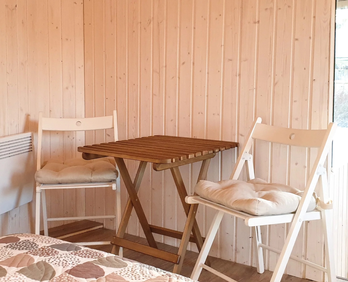В доме комфортно может разместиться семья из 3 человек (двуспальная кровать + односпальная кровать). В домике есть биотуалет. Основной душ, туалет и кухня расположены в общем доме в 50 м.