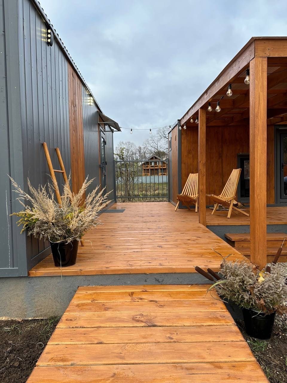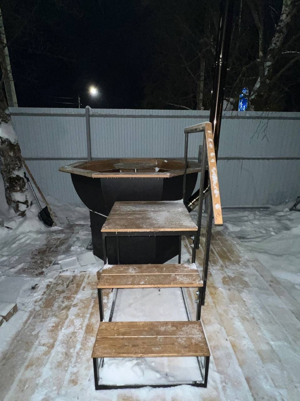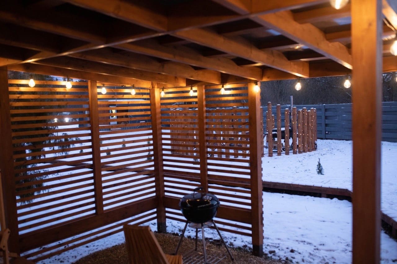 К каждому дому глэмпинга Дыхание примыкает теплая банька, а в 2 м на территории банного комплекса расположился любимчик гостей – подогреваемый сибирский чан под открытым небом.