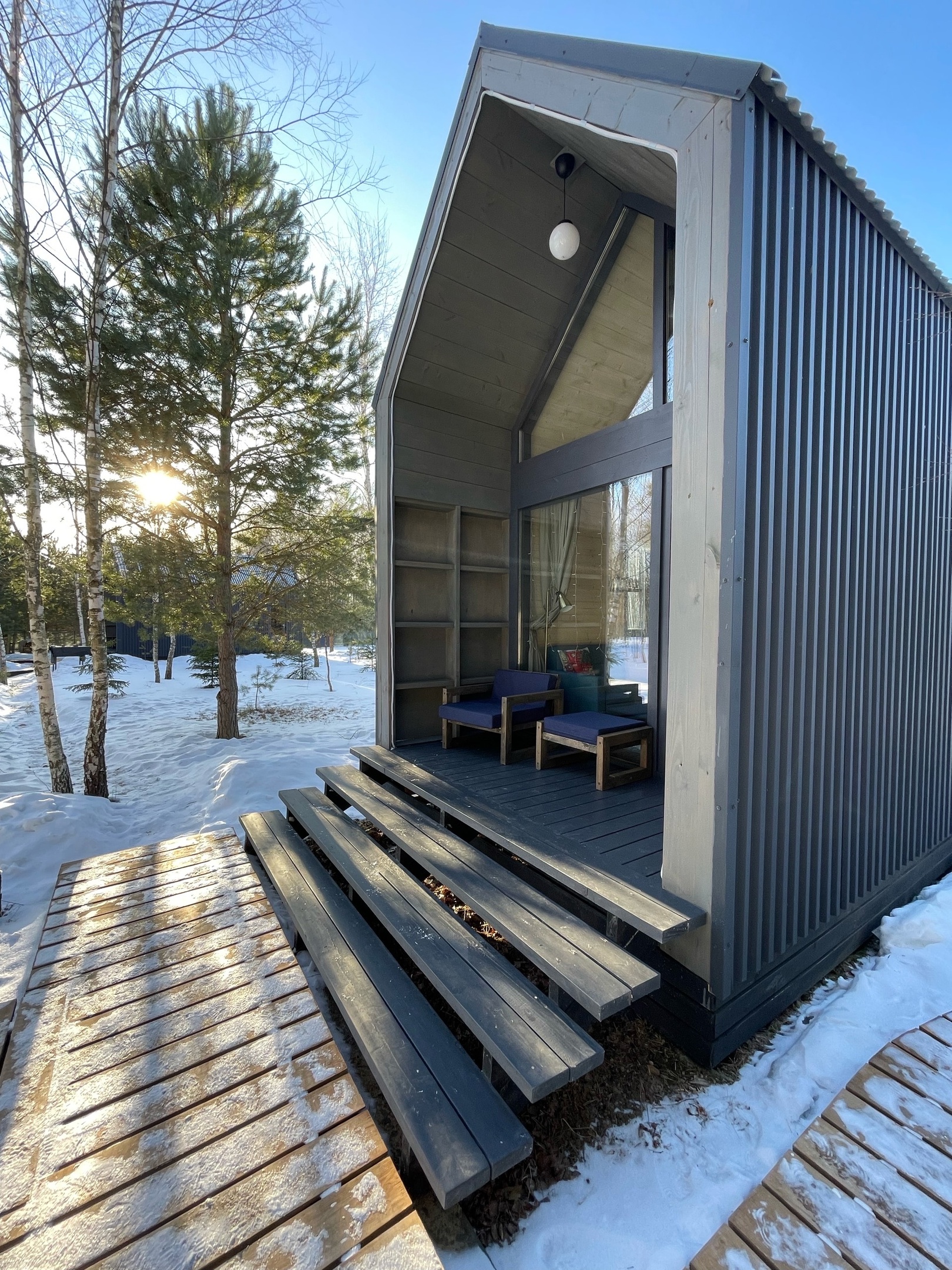 Уютный и стильный глэмпинг расположен в 120 км от Москвы, в Тарусском районе, в коттеджном поселке "Новая Земля". Состоит из двух домиков в стиле Барн и одного домика типа Шале. И конечно же баня и горячая купель ждут вас. Все это удовольствие находится на территории 2,5 Га в березовой роще и в окружении леса, а также имеется выход к реке Таруса.
