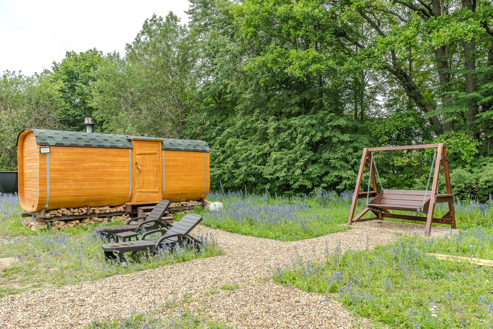 На территории А-фреймов типа Large есть баня, в которой можно расслабиться и "выпарить" весть стресс и суету городской жизни! Каждая клеточка вашего организма обновится и наполнится необходимыми силами. Костровые зоны позволят вам насладиться общением с друзьями и близкими, поиграть на гитаре, любуясь огнями звездного неба.