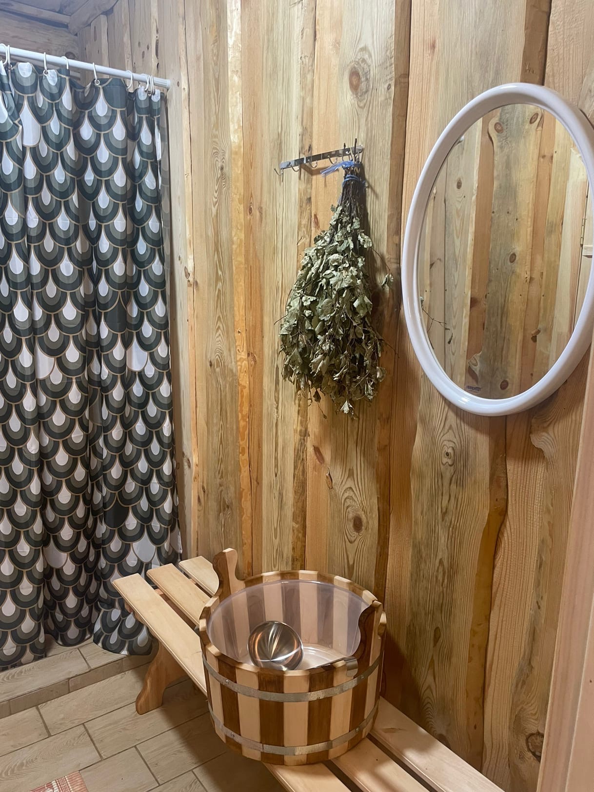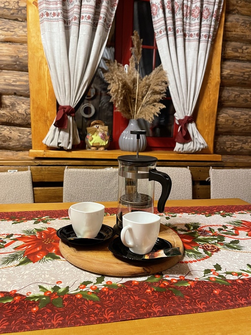 А для любителей сауны - своя закрытая территория с домиком с сауной и комнатой отдыха оформленной в деревенским стиле. В сауне вы можете пользоваться вениками, а также расслабиться в комнате отдыха для компании не более 6 человек.