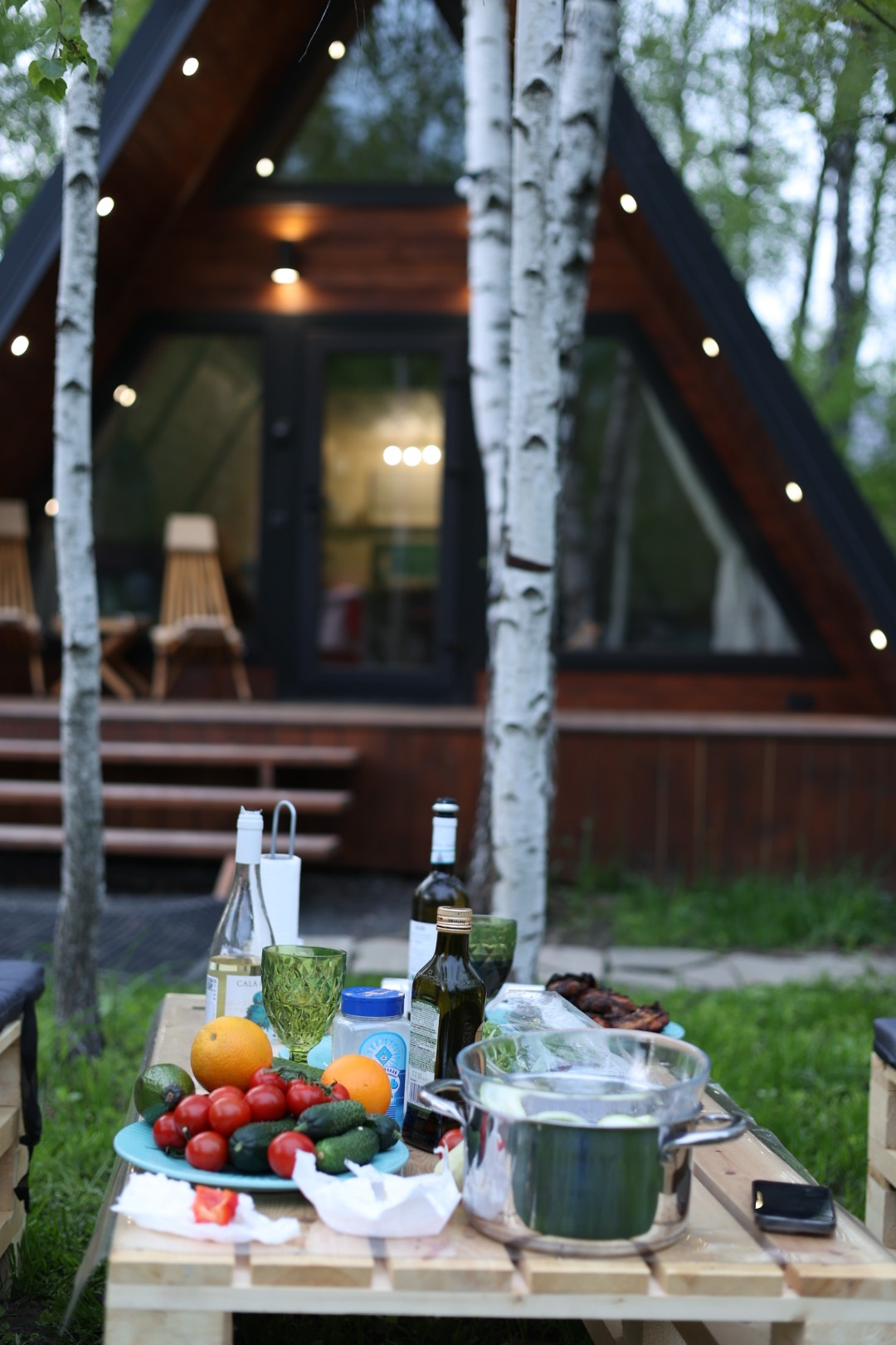 Глэмпинг находится в зоне доставки нескольких кафе, а также ВкусВилл, Яндекс Доставка