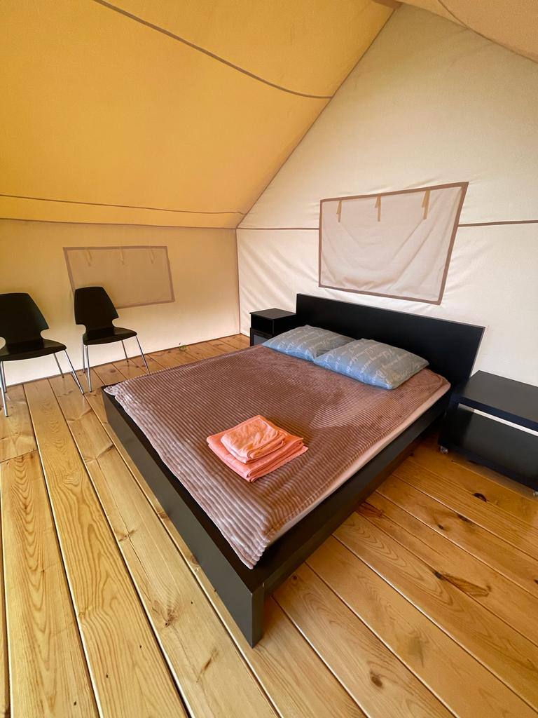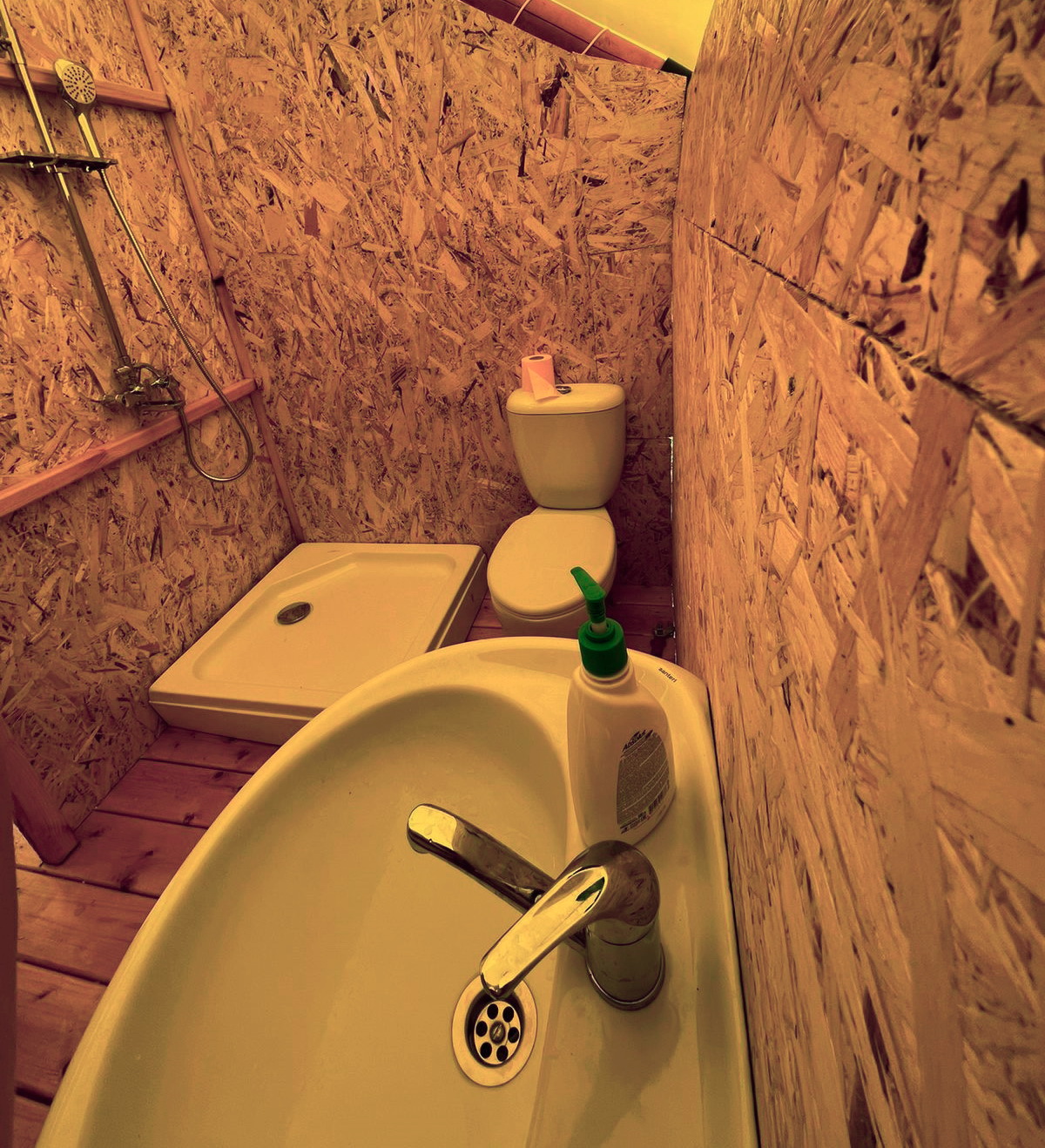 Каждый шатер оборудован туалетом, раковиной и душем.