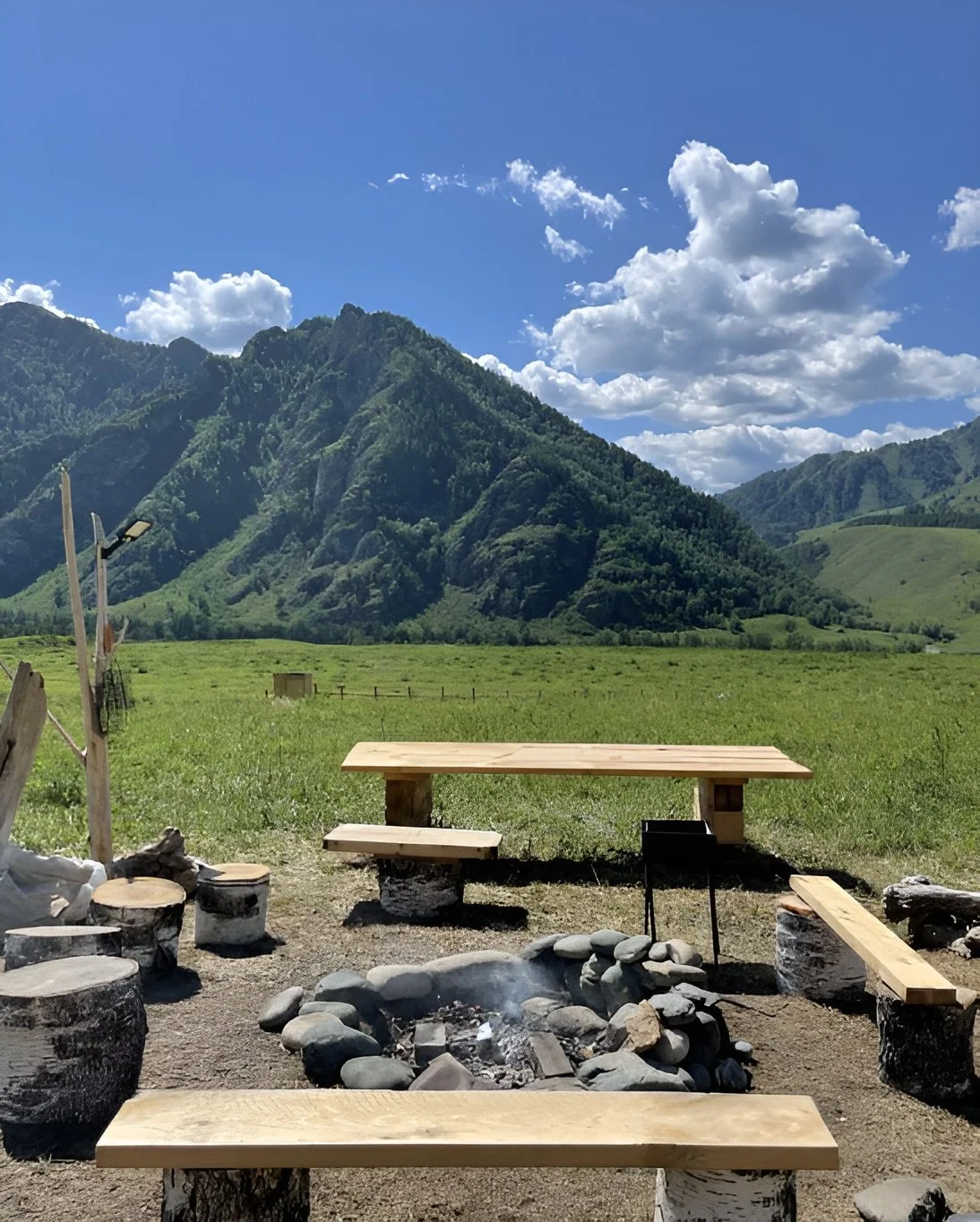Глэмпинг находится в долине среди гор, в Чемальском районе возле водопада Че-Чкыш (17 км от Чемала по асфальтированной дороге).