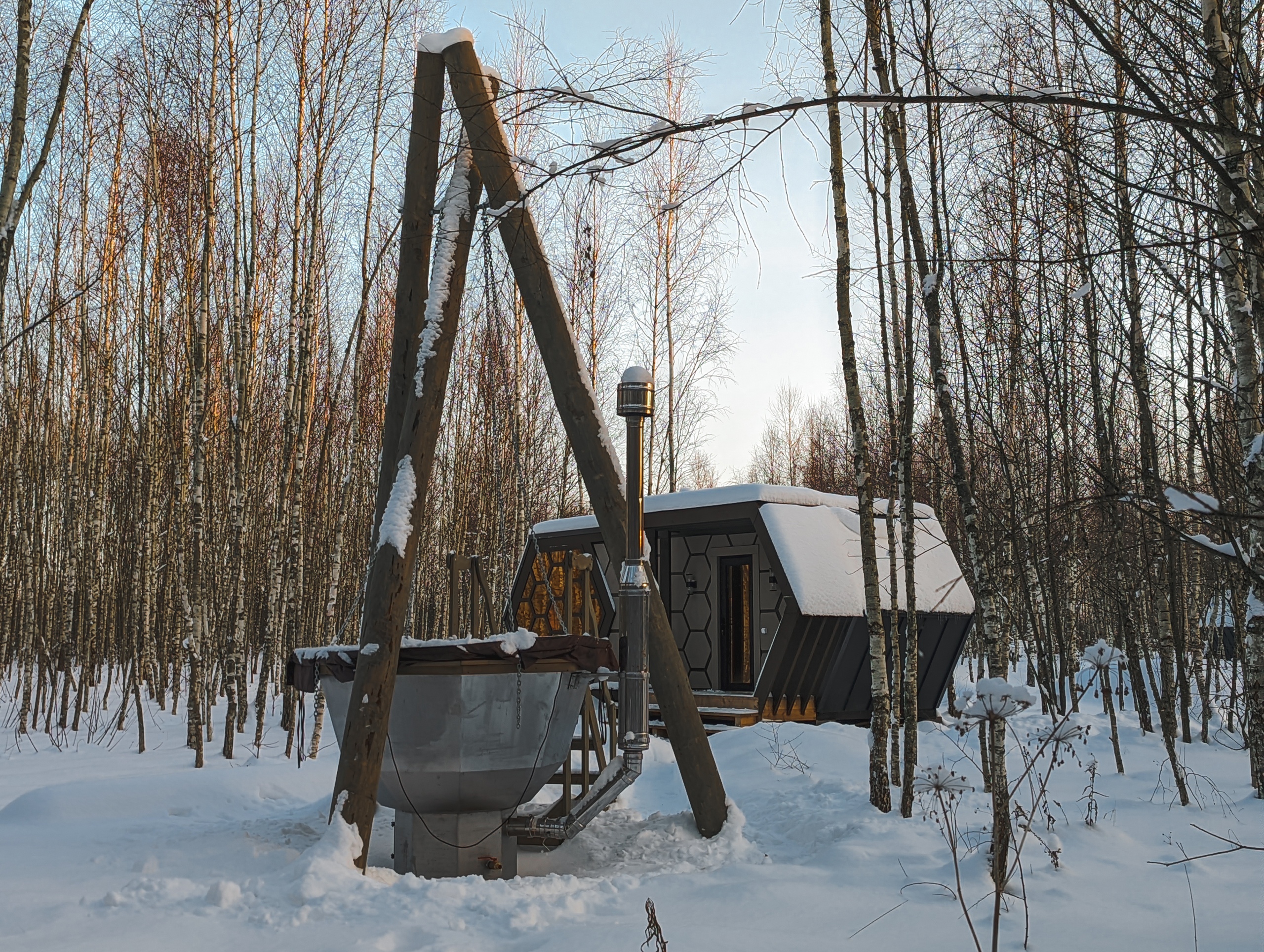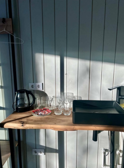 Баня в Honey Day обладает множеством полезных свойств благодаря можжевеловой выкладке на стене. Масла можжевельника очищают воздух в бане, насыщают кровь кислородом и оказывают успокаивающее действие. Отдых в бане на дровах с банными чанами поможет гостям достичь гармонии с собой и природой