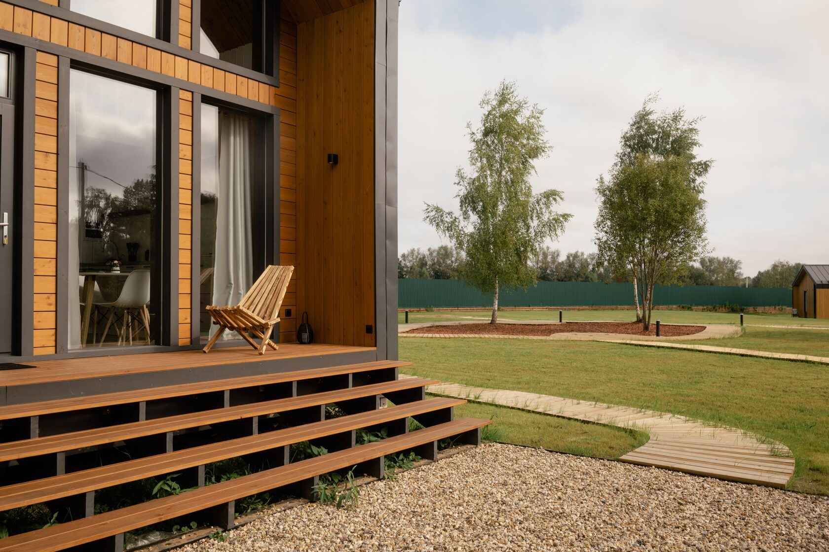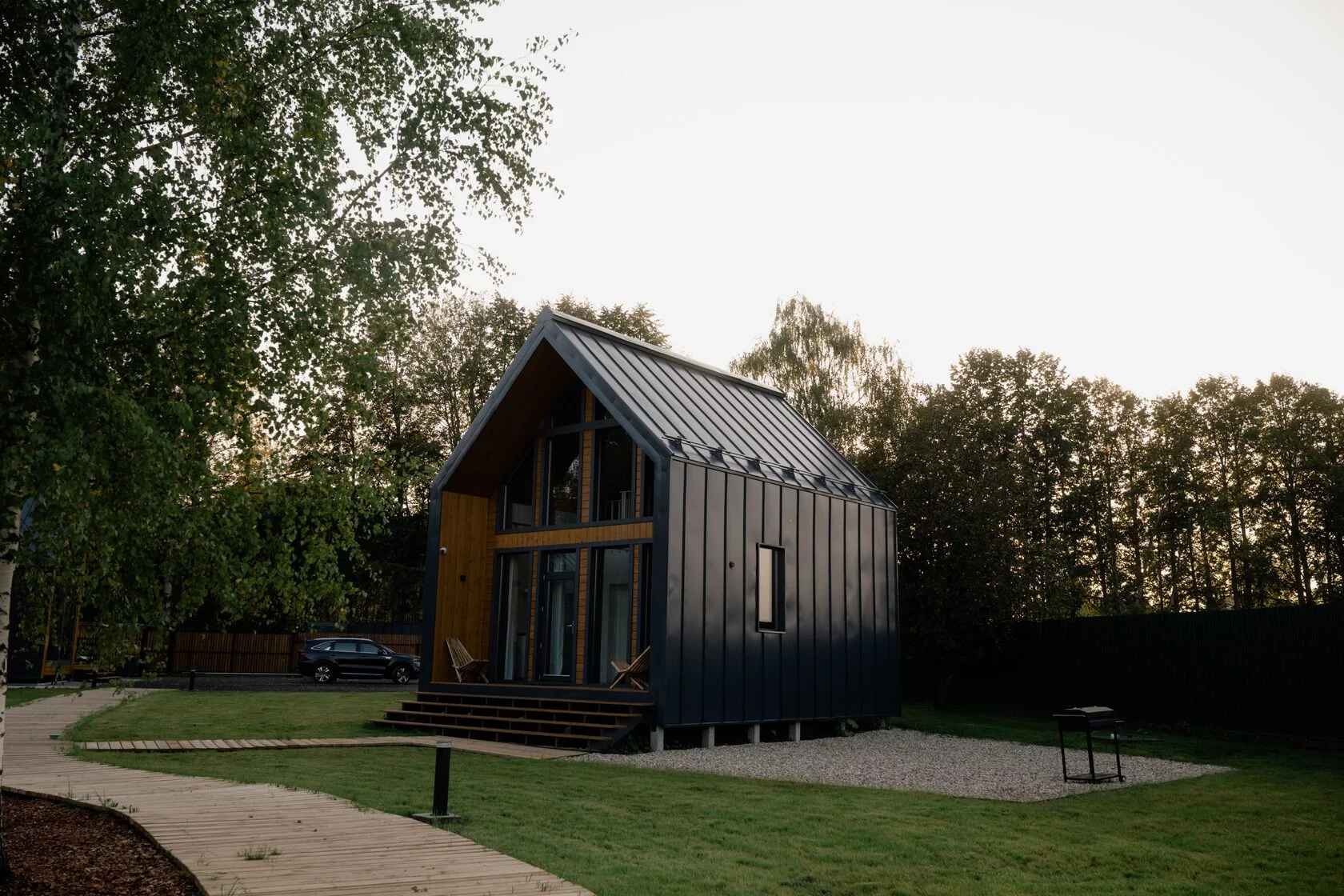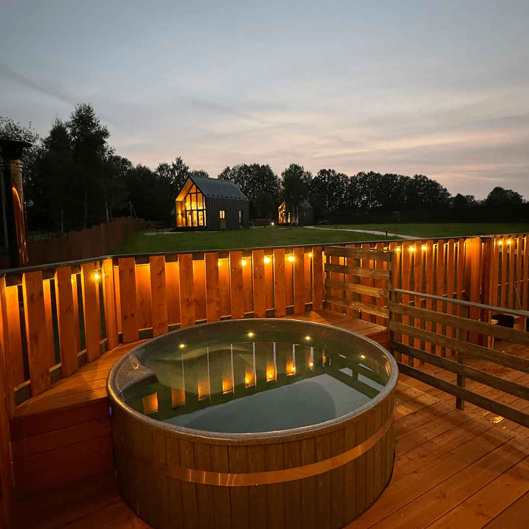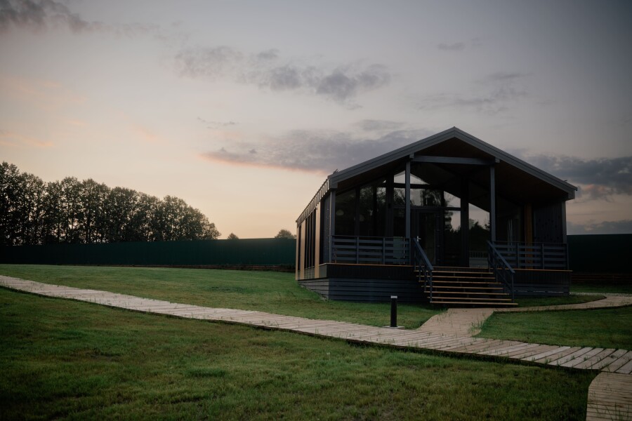 Для проживания гостей глэмпинга Хвоя доступны четыре стильных домика в стиле барнхаус с панорамными окнами и приватной зоной для уединенного отдыха. Внутри удобные кровати, собственная ванная комната, отопление и все необходимые удобства. Из каждого домика открывается вид на лес, который позволяет наслаждаться чистым воздухом круглый год. Из развлечений доступны велопрогулки, SUP-борды, а также шикарный банный комплекс с баней, купелью и травяным чаем.