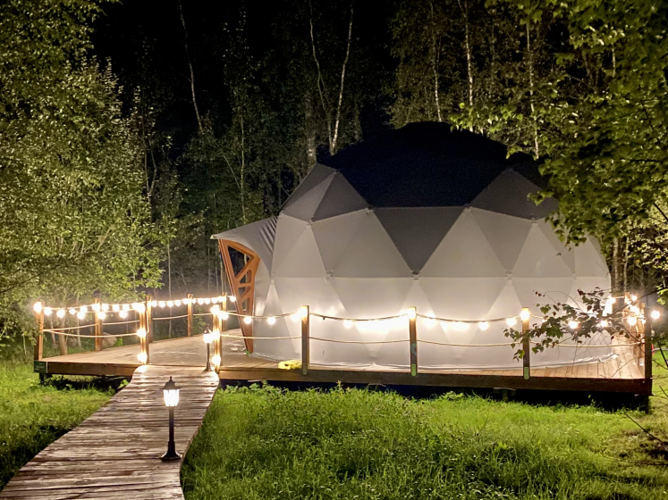 18 шатров и домов глэмпинга бережно и органично вписаны в природный ландшафт Пушкинских гор.