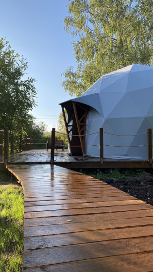 Природа плюс городской комфорт глэмпинга – самое то для полноценной «перезагрузки». Каждый шатёр и дом глэмпинга имеет собственную террасу, где можно вкусно позавтракать или устроить романтический ужин на открытом воздухе.
