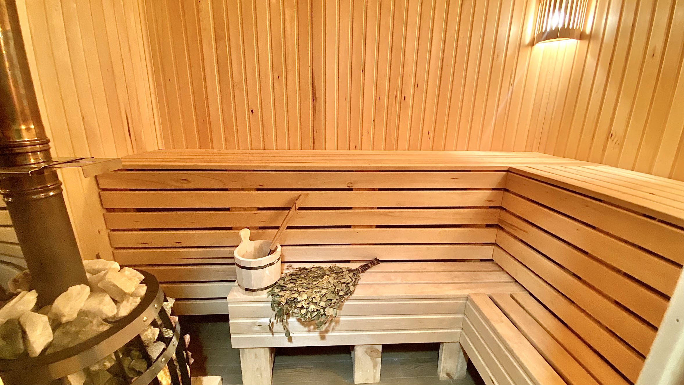 Также у нас есть полноценная баня с большой комнатой отдыха и удобной парной с дровяной печью. Мягкий пар обновляет душу и тело, а большой телевизор с коллекцией фильмов и приставкой Дэнди позволяет интересно провести время.
