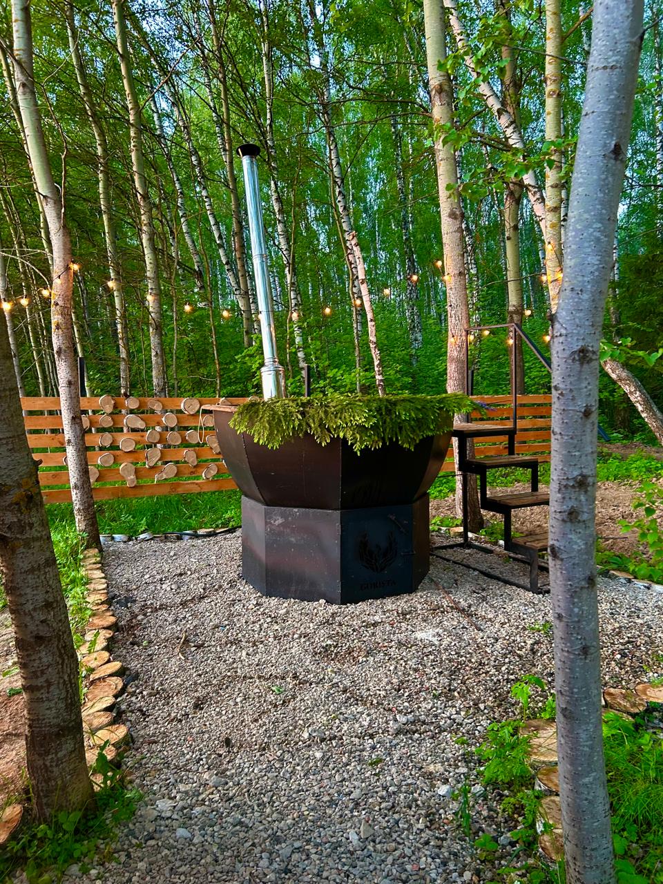 Мы предлагаем чан для парений под звездным небом, мангальную зону для вкусных ужинов и костровище для теплых бесед. Эти возможности доступны круглый год для максимального релакса.