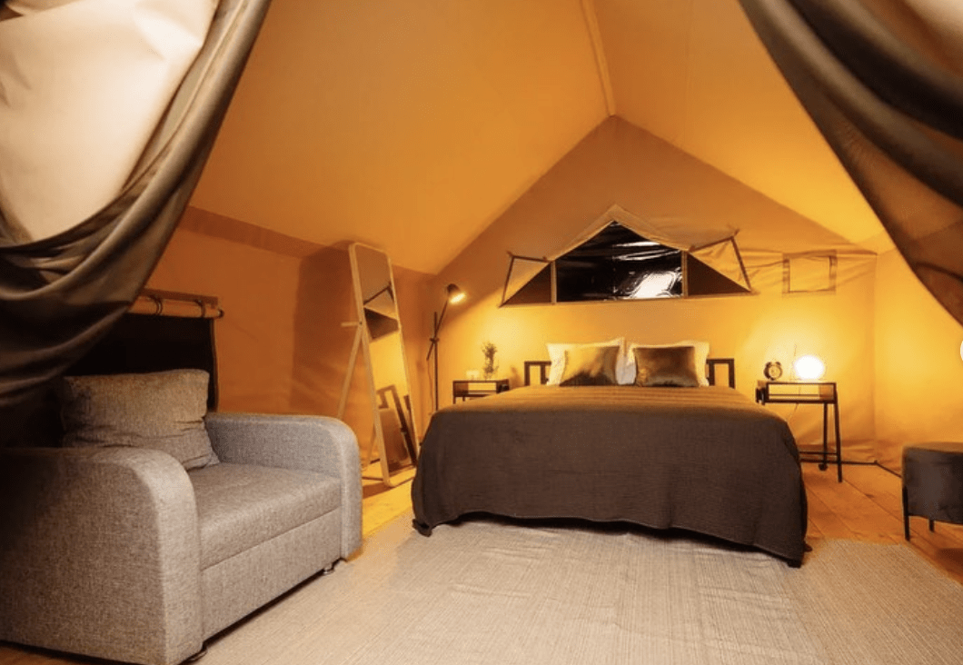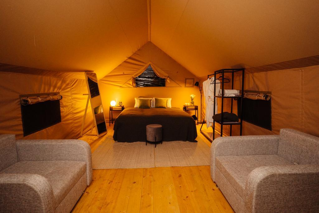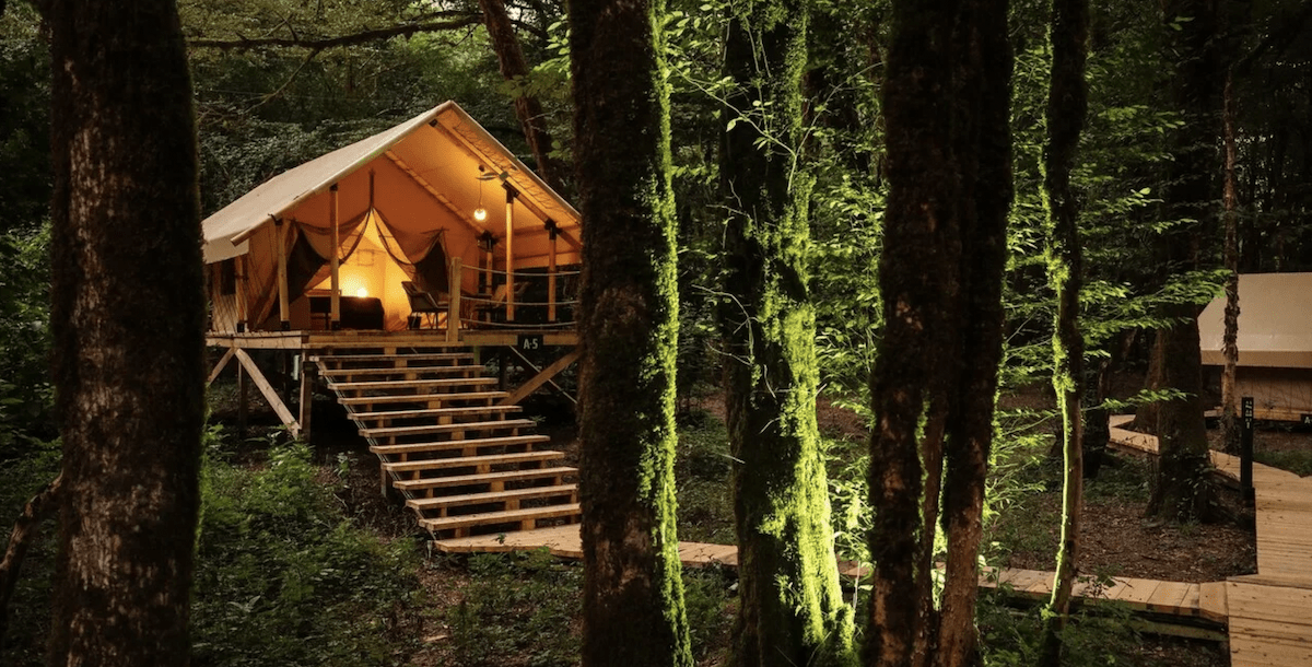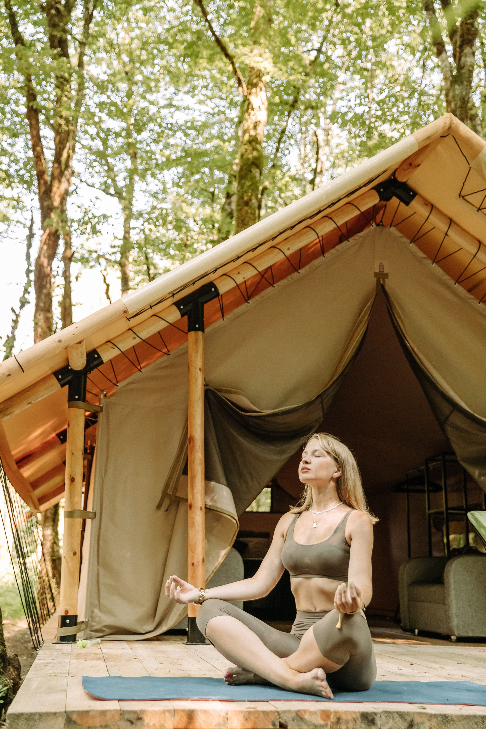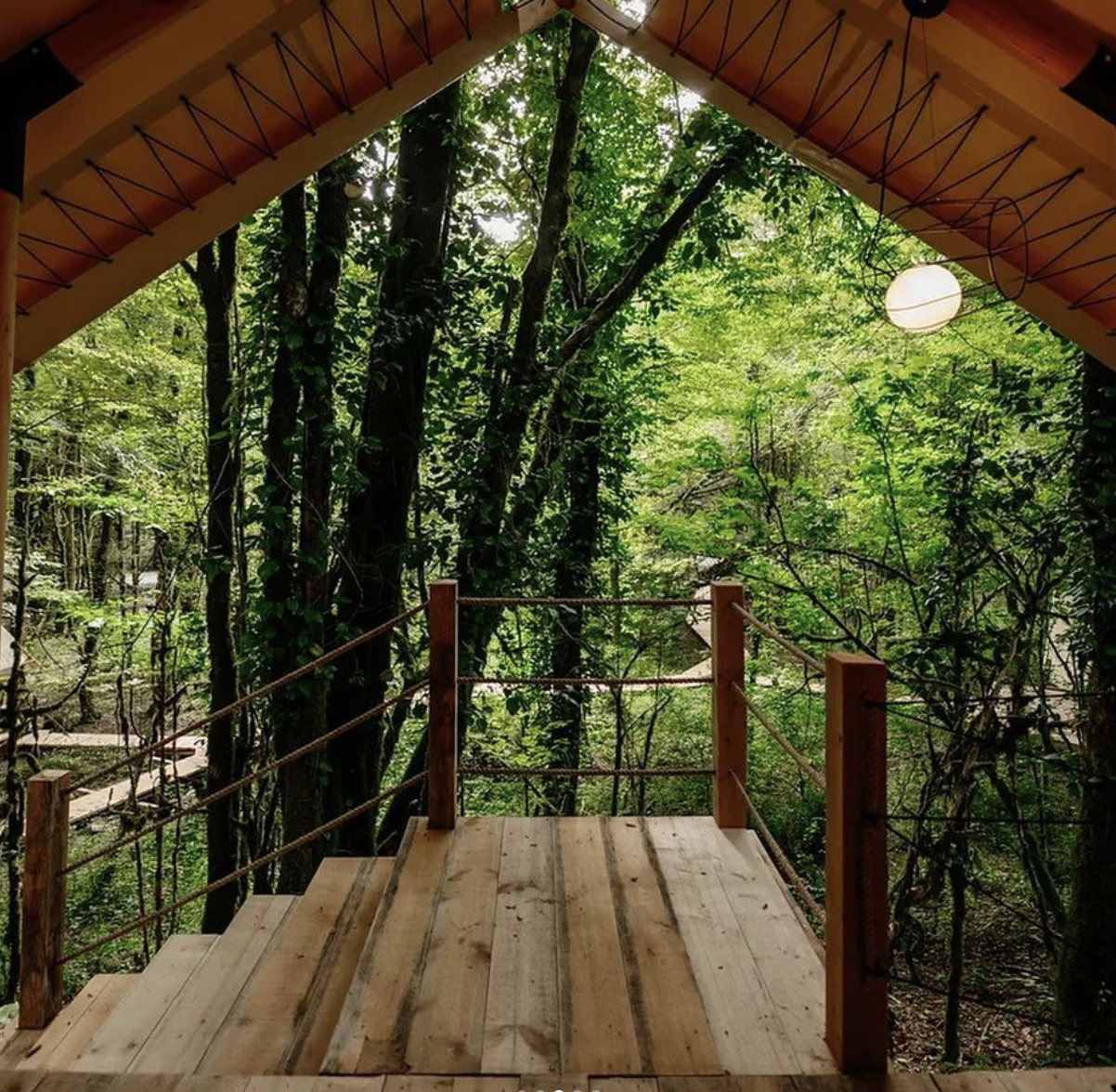 Здесь гостиничные номера находятся в комфортных сафари-тентах. В номерах тепло и уютно: двуспальные кровати, гардеробная зона, освещение, электричество и WiFi. Индивидуальные террасы с незабываемым видом на лес или горную реку.